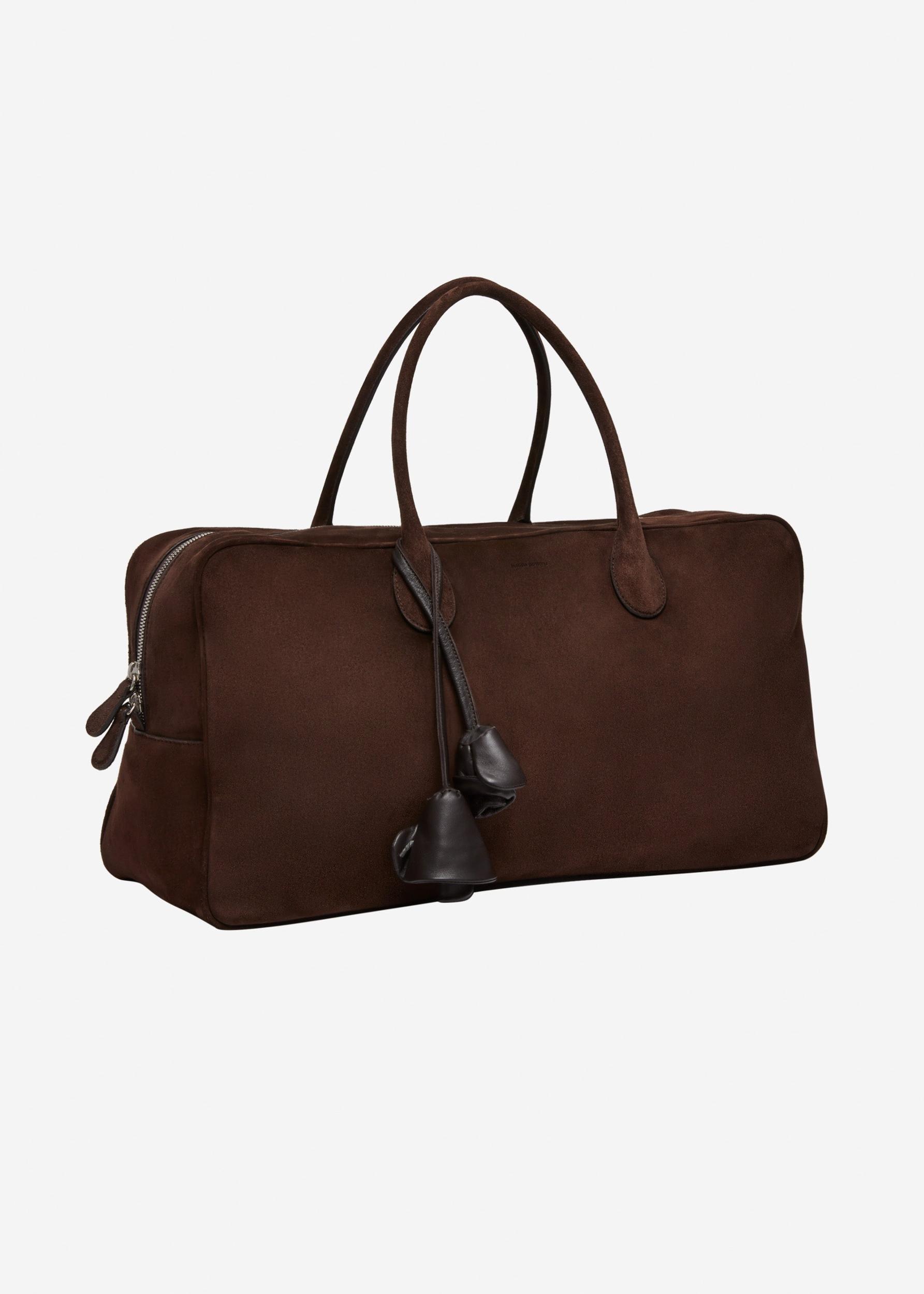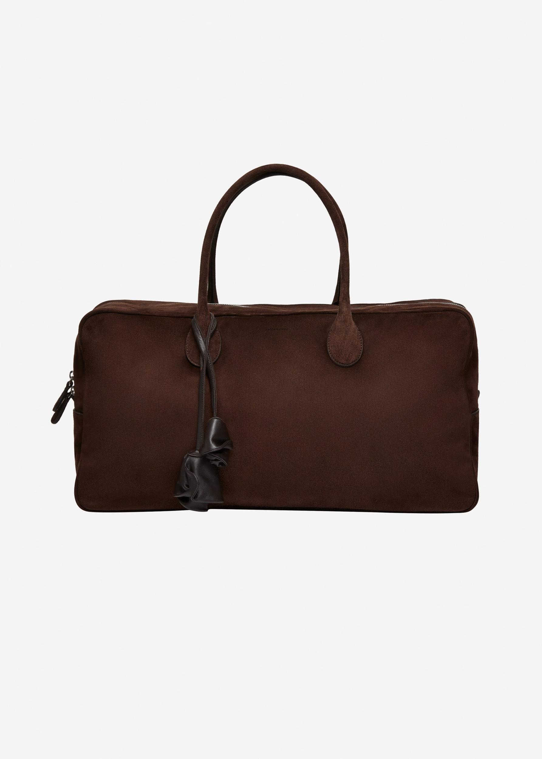 The iconic Brigitte bag in its large size, offering a stylish and practical day bag with a minimal and classic look. The lining is crafted from canvas for an ultra chic finish. Silver feet at the base protect against wear and tear. The bag is made recognizably Magda with its detachable flower charm at handle.