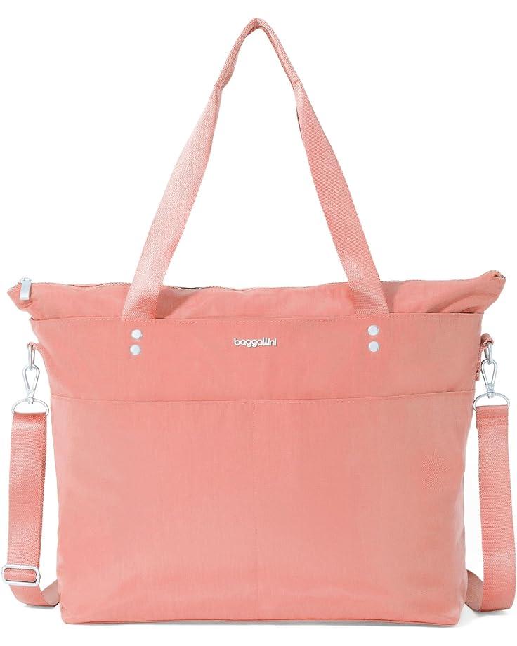 With the ability to be worn as a shoulder bag or crossbody, this spacious Baggallini® Carryall Laptop Tote is a must-have for your work week, upcoming travels, or trips. Store your computer in the secure 15" padded laptop sleeve. For smaller items that require fast access, exterior slip pockets and an anti-theft card wristlet have you covered. Constructed from durable nylon material, this versatile bag features a removable and adjustable crossbody strap, dual grab handles, and a zippered top closure.