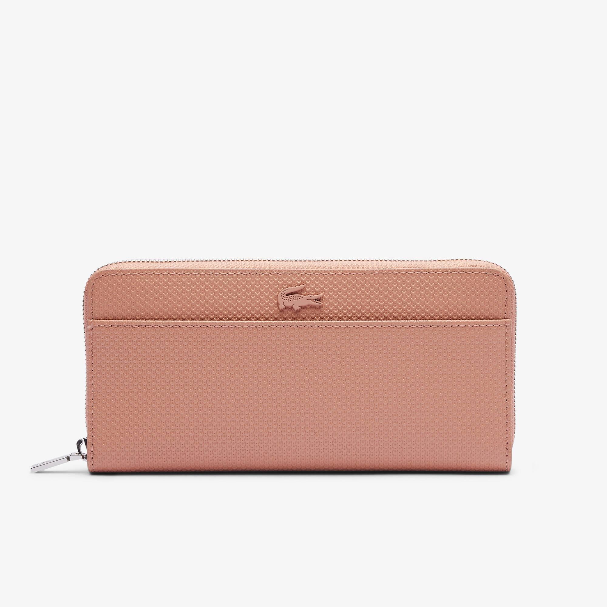 Iconic fine embossed piqué leather composes the large zippered Chantaco wallet, which can be easily slipped into a shopping bag from the collection. Cleverly designed and fancy, the piece is equipped with several storage options such as twelve slots for your cards and receipts. A flat exterior pocket wraps up this everyday accessory crafted to keep things in order.