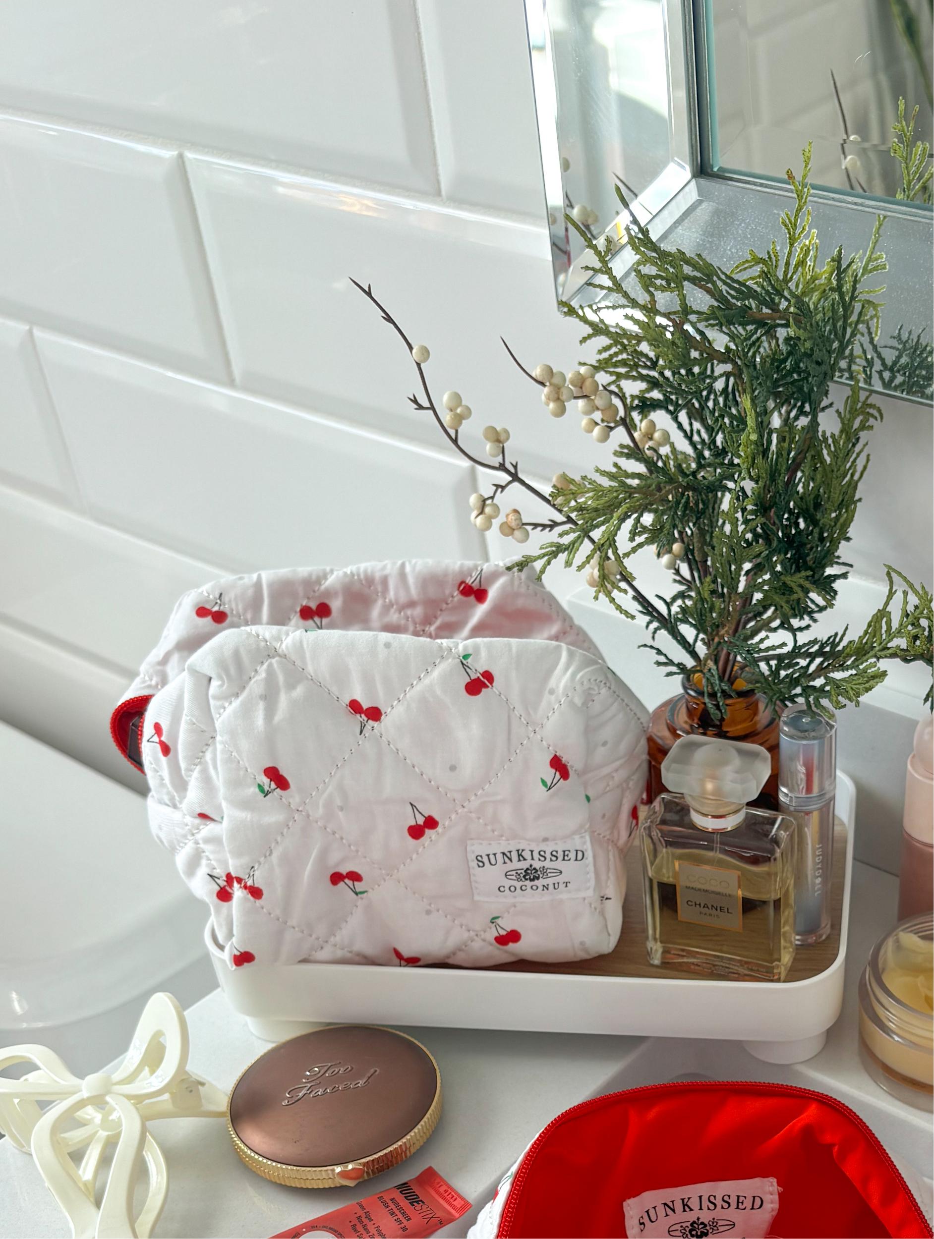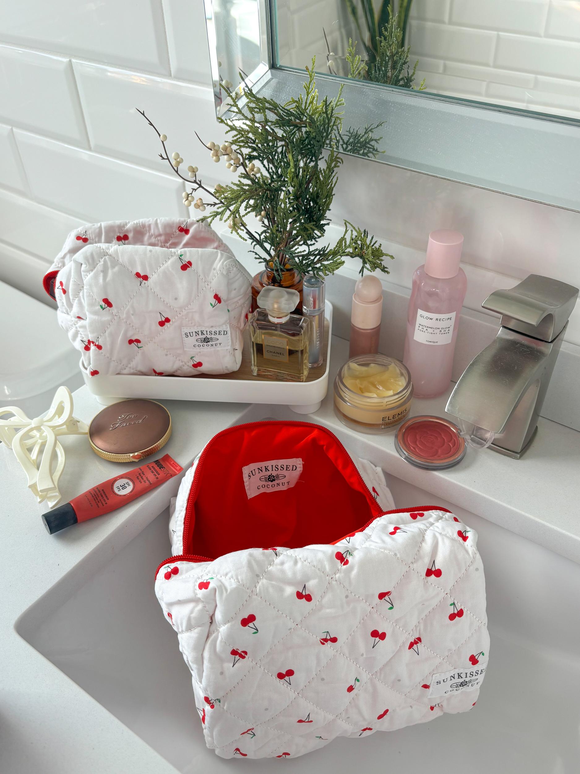 The Sunkissedcoconut quilted makeup bag is a stunning carry-all that's perfect for any occasion. It features a beautiful soft patterns and adoable inner lining, and the outer quilting provides an extra layer of protection for your belongings, keeping them safe and secure. This versatile bag is perfect for carrying cosmetics, skincare, haircare, accessories and stationery.