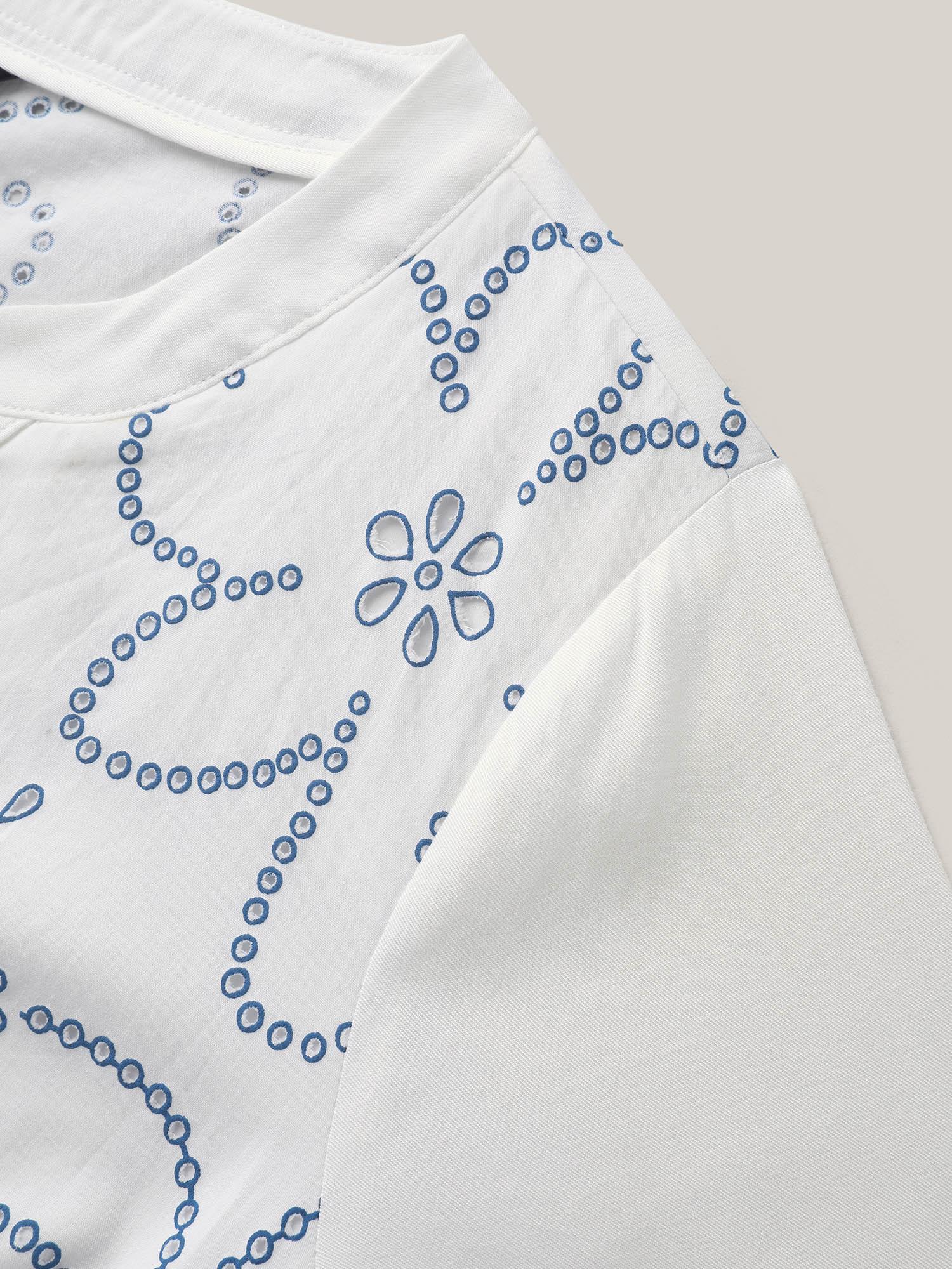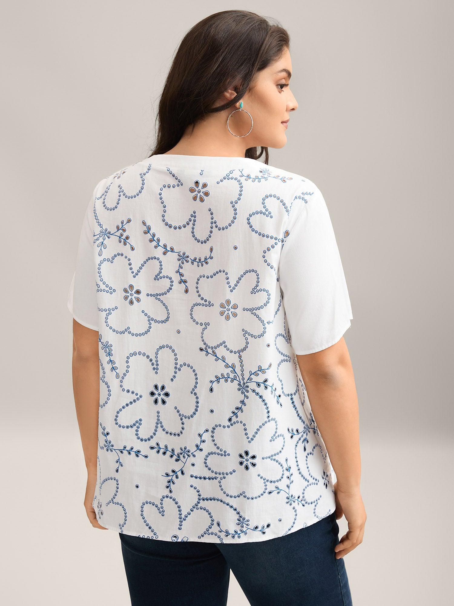 Shop Large Floral Print Split Neck Blouse now and redefine your style with confidence at BloomChic. Tailored for mid and plus-size women. This trendy Tops Women, sizes 10-30. Color:WhiteSmoke;Prints:Floral;Neckline:Flat collar with V-notch;Sleeve Type:Regular Sleeve;Details:Cut-Out;Pocket:No-pocket