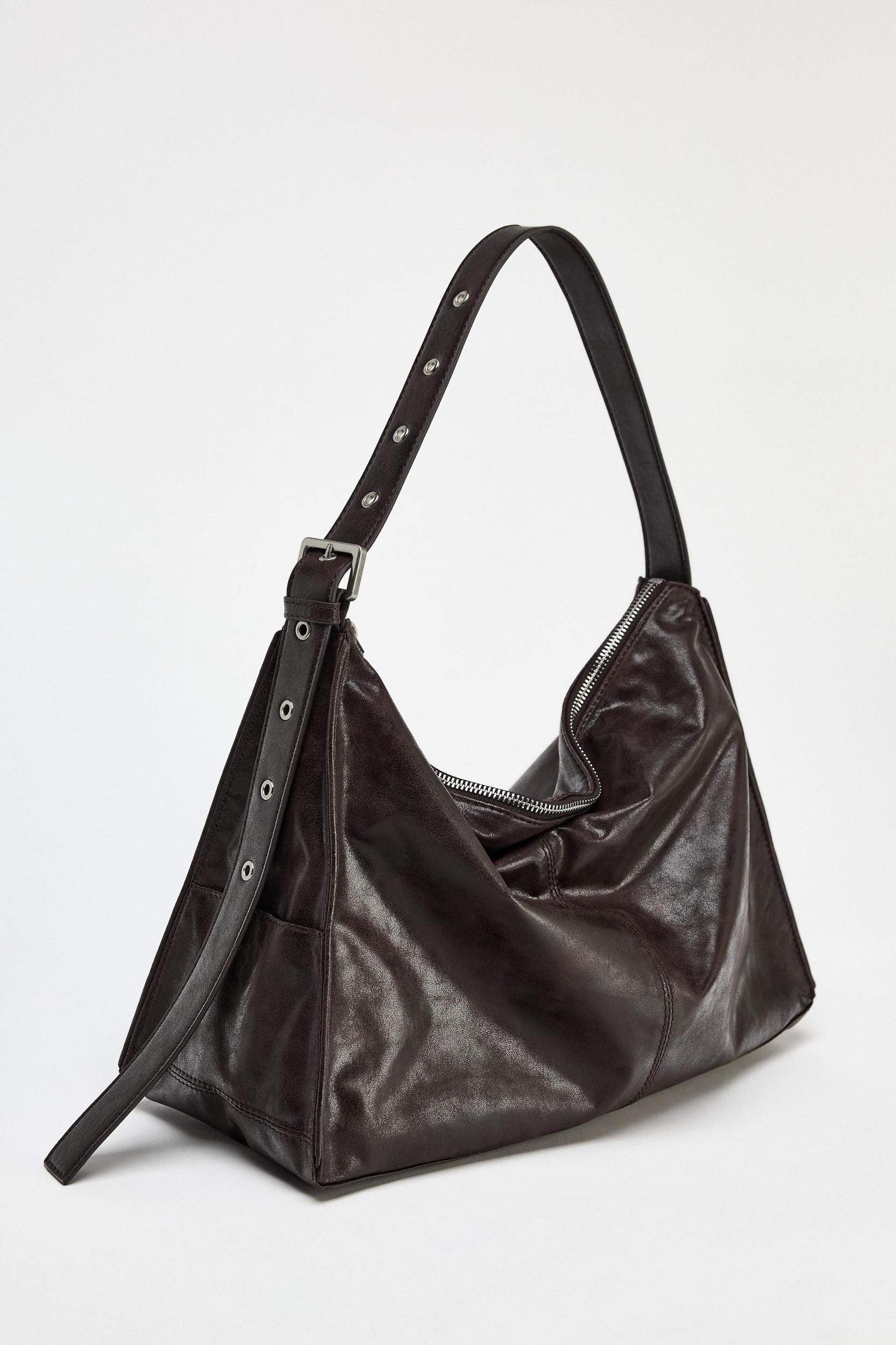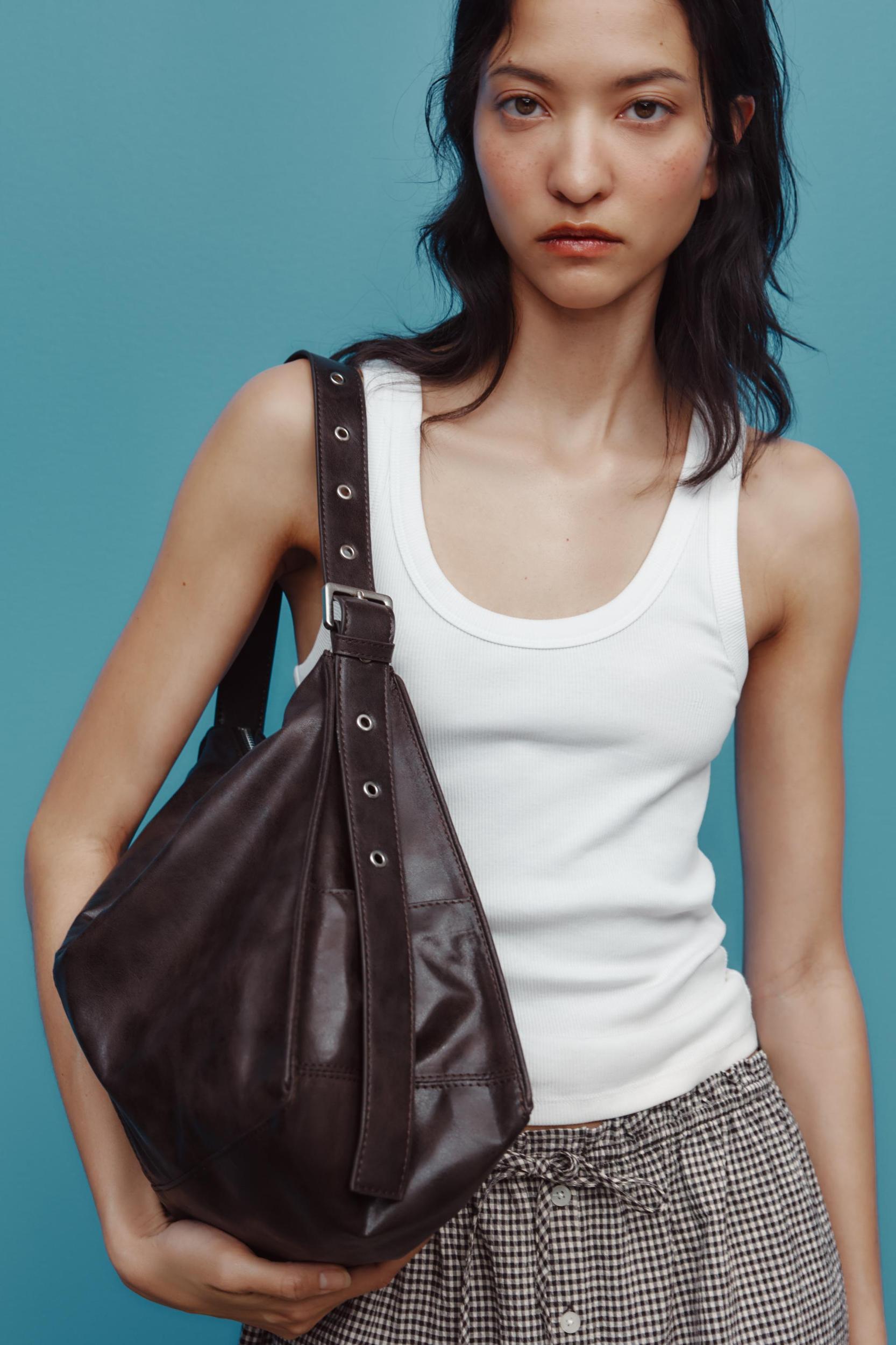 LARGE SOFT BUCKET BAG WITH METAL EYELETS