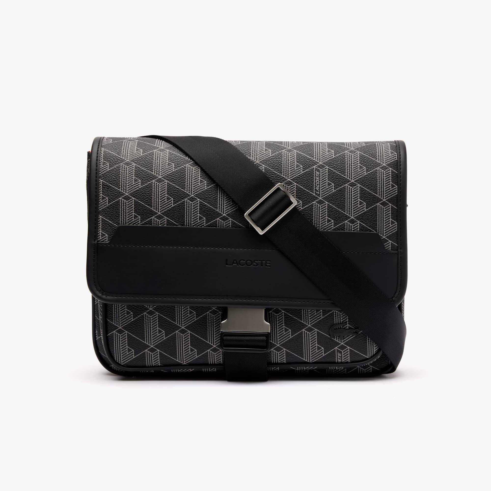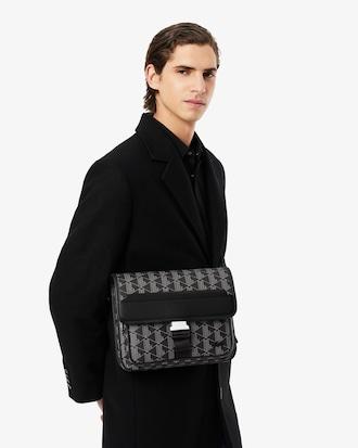 This practical, stylish flap-close bag is made from a grained fabric with a monogram print. The ergonomic design includes a main pocket with room for an 11” tablet and an additional zipped compartment. The wide strap and iconic motif add a bold, modern twist.