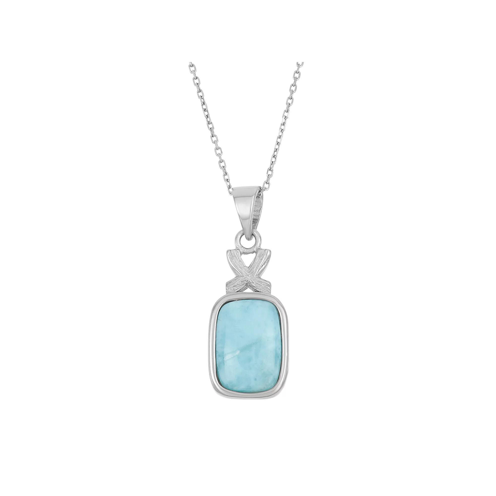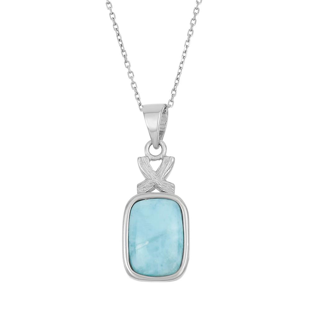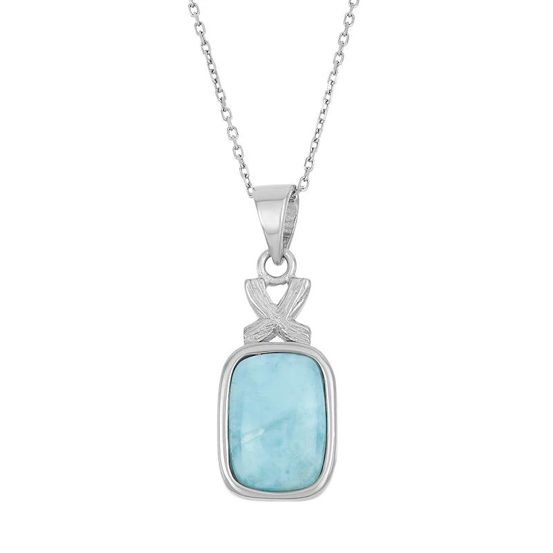 Featuring a rectangle-shaped genuine larimar stone accentuated with an XO design, this sterling silver necklace makes a loveable addition to your ensemble. Comes in a gift box.PENDANT DETAILS Pendant length: 1.1 in. Chain length: 18 in. Clasp: spring-ring Metal: rhodium-plated sterling silver STONE DETAILS Stone type: genuine larimar Center stone size: 12 mm x 9 mm Shape: rectangle Size: 18". Color: Blue. Gender: female. Age Group: adult.