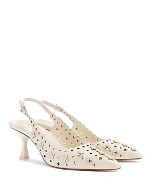 Larroude Womens Jasmine Pointed Toe Flower Detail Perforated Slingback Pumps
