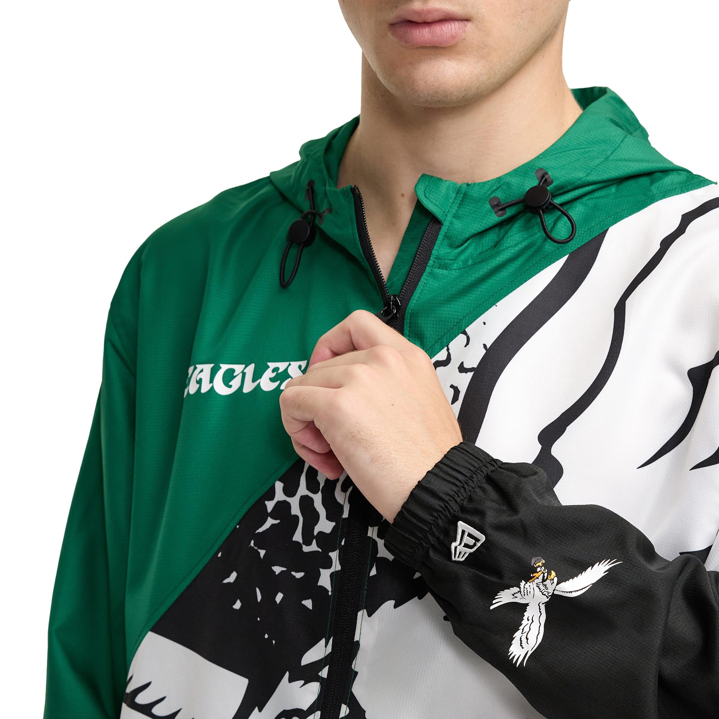 The Las Vegas Raiders Sport Classics Color Block Windbreaker features a screen-printed Raiders logo at the right chest and an alternate team logo at the left wrist. Additional details include a sublimation printed team graphic across the front and a full zip closure.Fabric: 100% Polyester, Ripstop