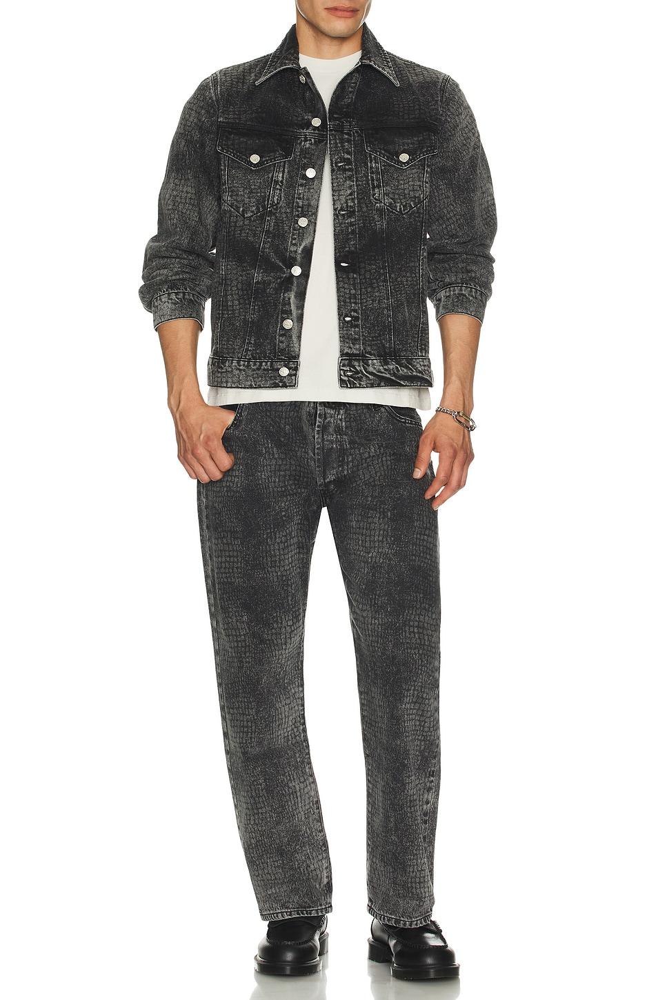 trucker jacket100% cotton / Machine wash / Front button closure / Chest flap pockets with button closure / Button cuffs / Faded croc pattern throughout / Midweight denim fabric / Made in Portugal / Our Style No. AIEX-MO4 / Manufacturer Style No. AR70101.03 / Model is wearing size M.