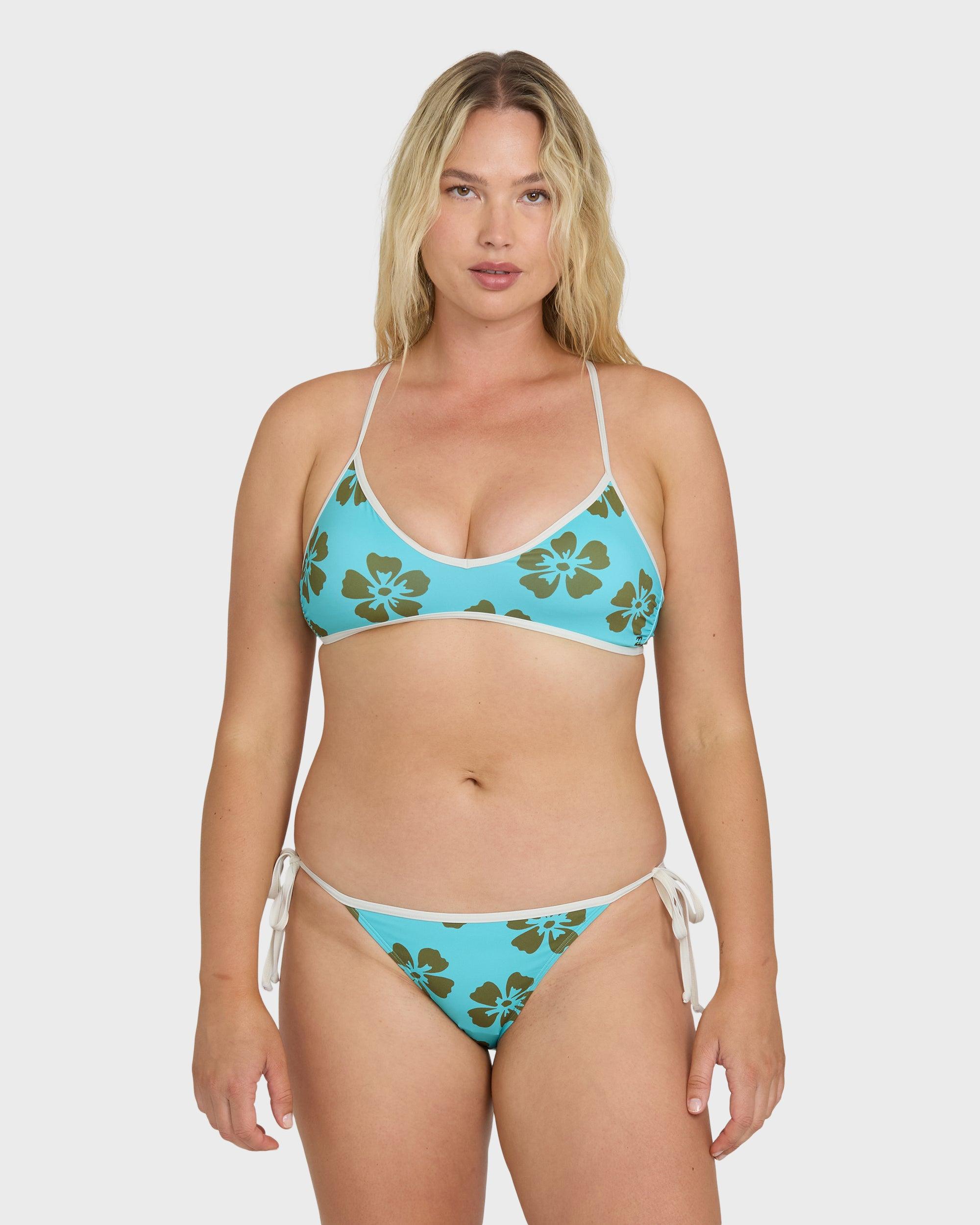 This V bralette bikini top offers medium bust coverage with the perfect touch of style. Back ties ensure a custom fit while removable cups provide versatile support. Made with partially recycled materials and finished with subtle logo embroidery for that signature touch from our summer collection. Features Fabric: 78% recycled nylon (polyamide), 22% elastane Type: V bralette Fit: Medium bust coverage Features: Ties at center back for adjustability Removable cups Logo embroidery at wearers left side seam