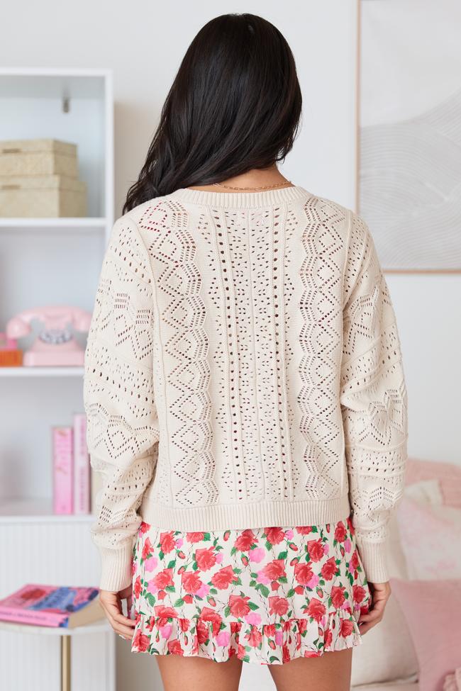 Details Taupe Open Knit Cardigan Fabric has some stretch V-neckline, ribbed hem, functional button up closure, open knit Unlined Size small from shoulder to hem: 19" Material and Care 60% cotton 40% acrylic Machine wash cold, tumble dry low Patterns may vary Materials may have natural variations Colors may vary from different viewing devices.