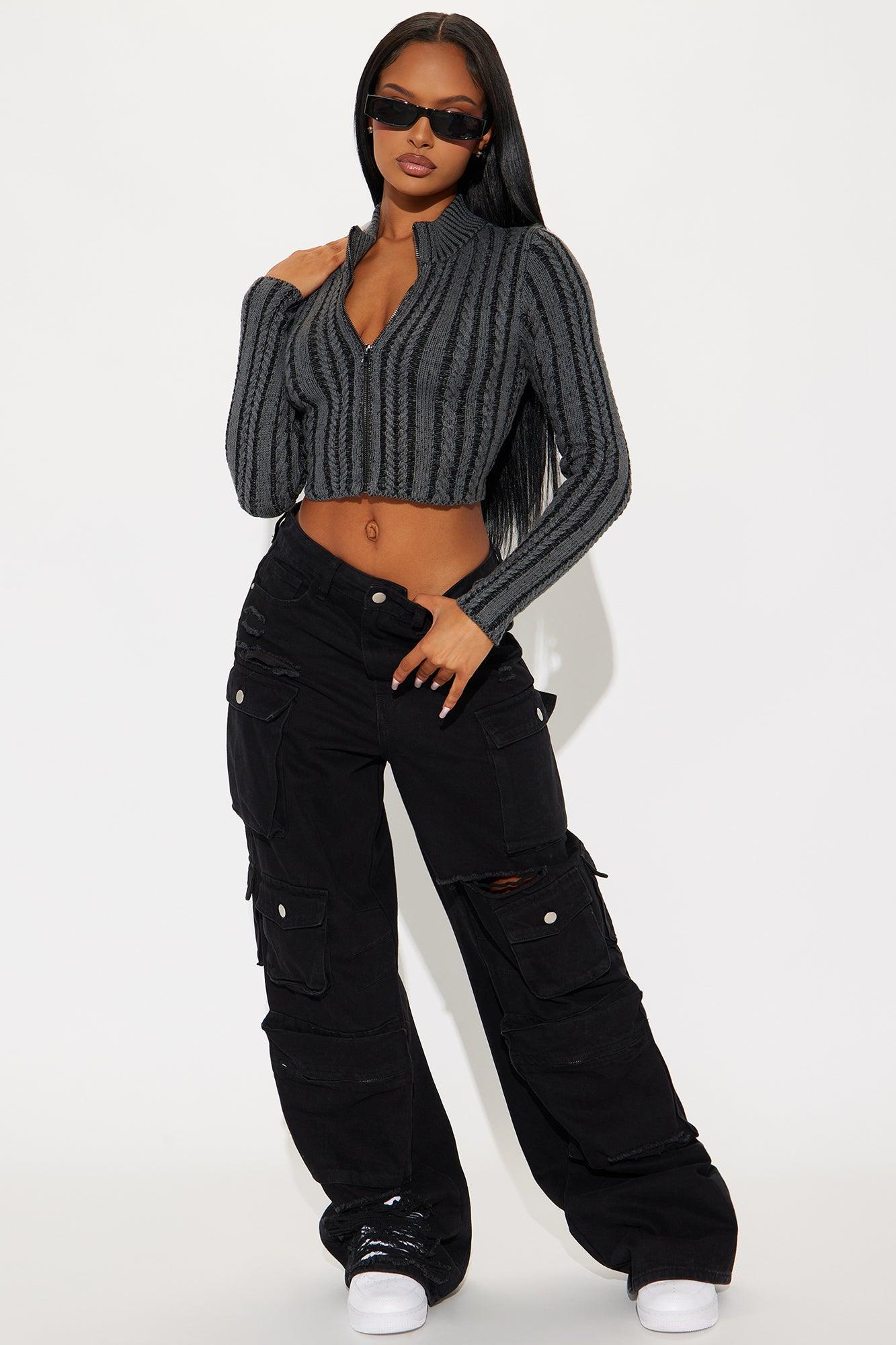 Late Night Drive Cable Knit Cropped Cardigan - Black/combo
