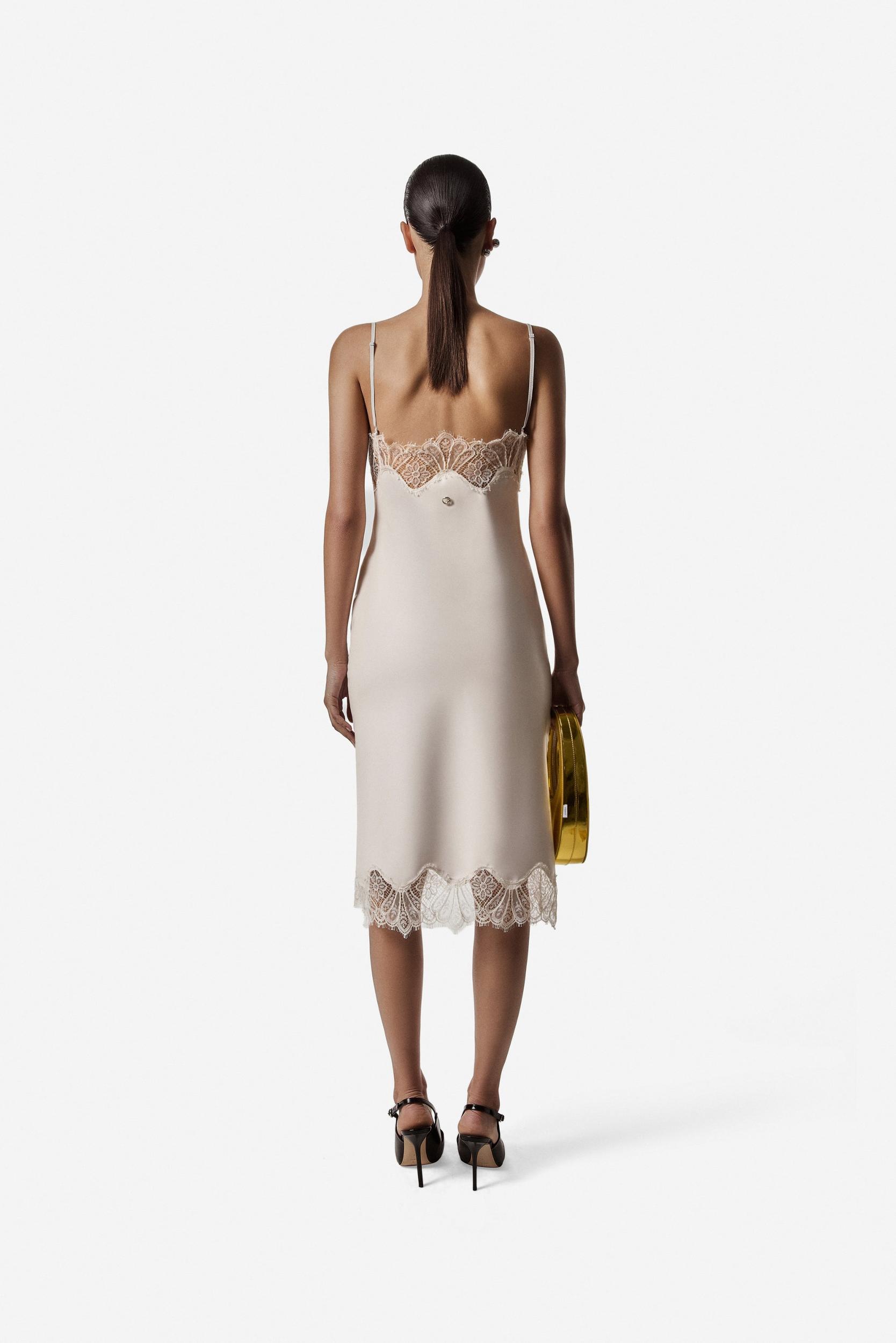 Fusing the delicate with the avant-garde, Coperni's pure white slip dress is crafted from lace covered in silicone for a glossy, almost milky effect. Its figure-flattering silhouette is cling-free and gently caresses the curves of the body.