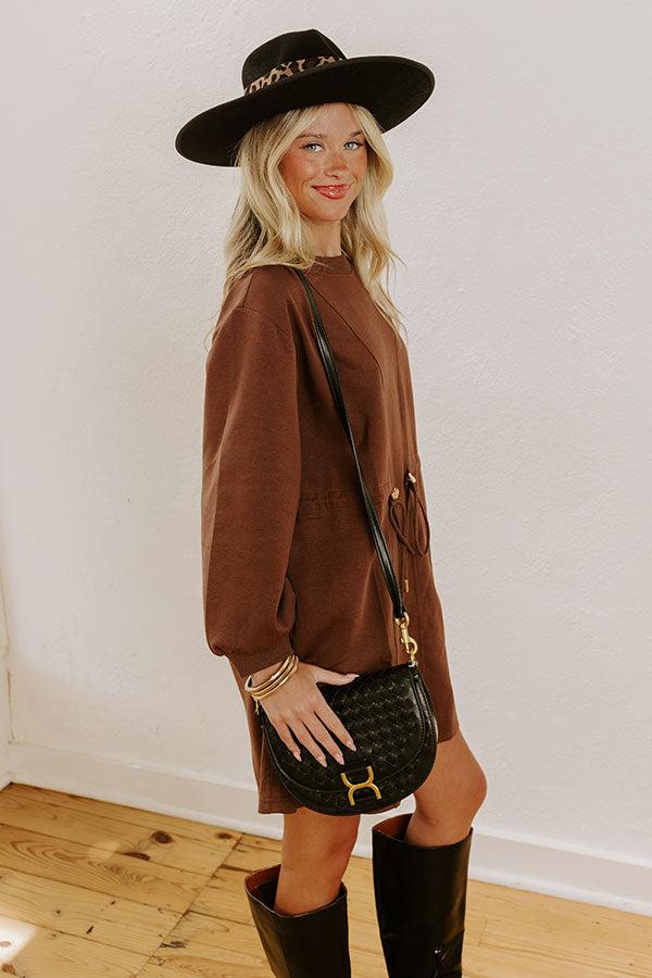 - Embrace effortless charm with this adorable mini dress! Featuring a cinched waistline for a flattering fit and playful gold heart accents, this dress combines sweet, feminine style with a trendy casual twist. Perfect for any occasion, it's your go-to for looking chic and feeling fabulous! - Unlined material - A crew cut neckline - Long, loose sleeves with ribbed cuffs - A functional drawstring at the waistline featuring gold colored heart accents - Hidden side pockets - A relaxed silhouette that ends in a straight mini dress length hemline