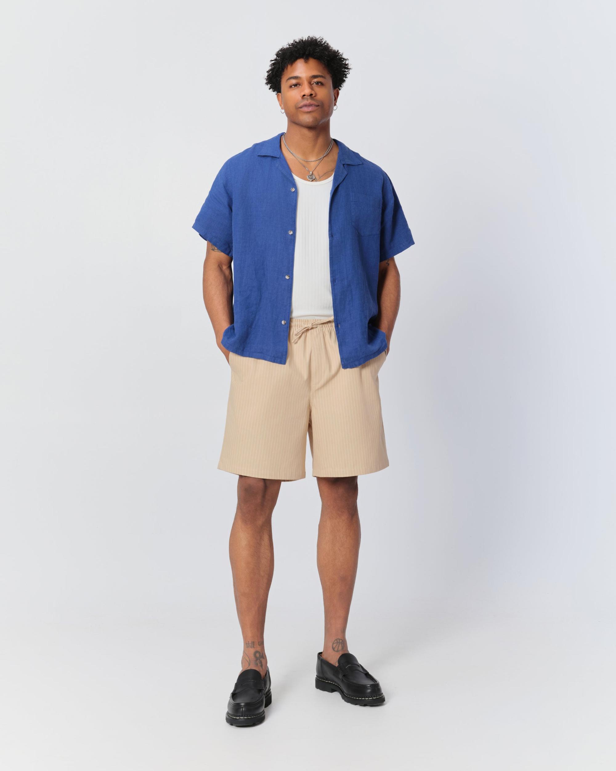 Our updated Leisure Short is the ideal warm-weather counterpart. Constructed out of a midweight, 100% cotton striped denim, our signature denim fuses elements of workwear and leisure wear. Sourced exclusively from Japan, this fabric offers a more structured option to a summer staple.