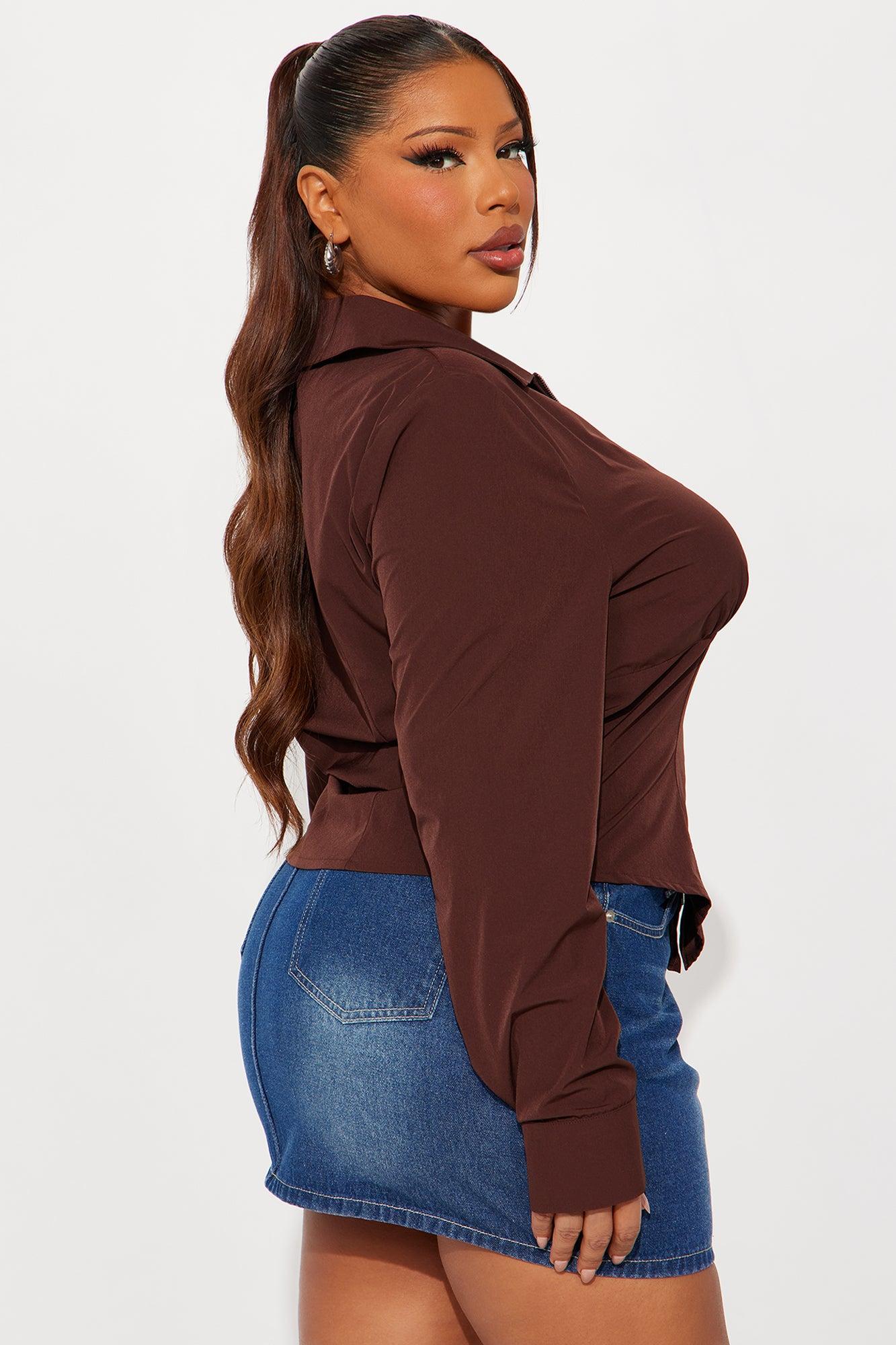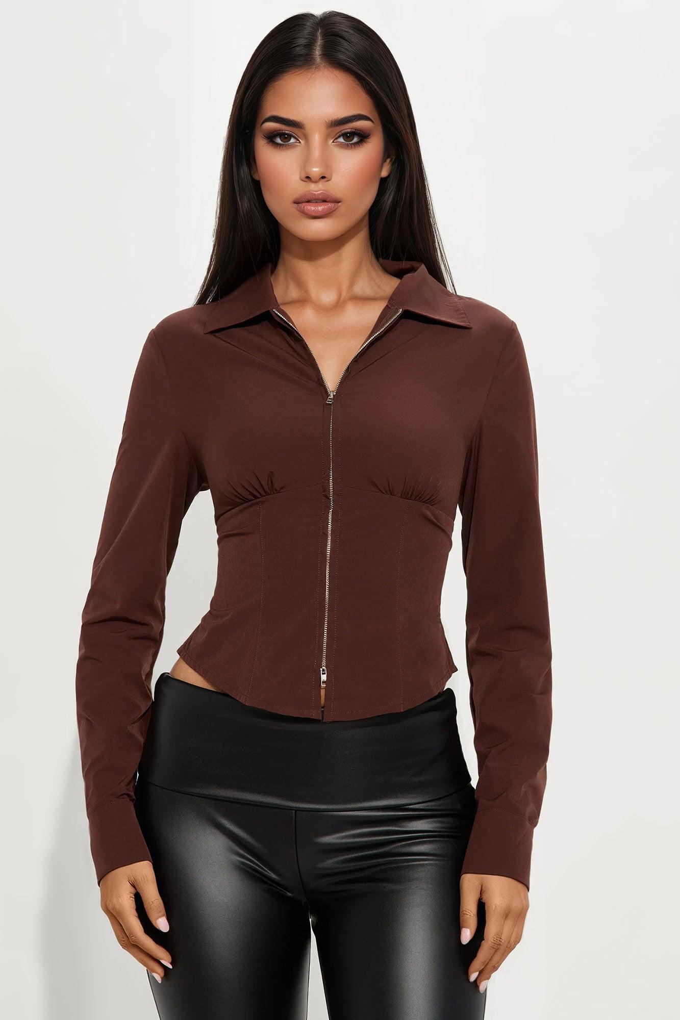 Laurel Zip Front Top - Chocolate