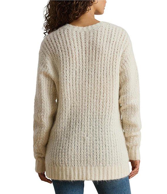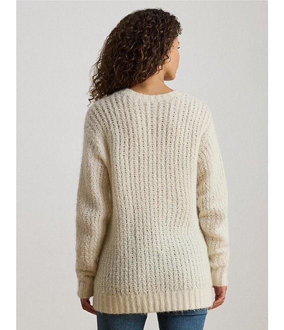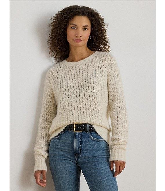 From Lauren Ralph Lauren, this sweater features: Knit fabrication Crew neckline Long sleeves Oversized, intended to hit at the lower hip Ribbed details neck and cuffs Dropped shoulders Ribbed hemline Pullover construction Approx. 25" body length, 20.75" sleeve length Nylon/alpaca hair/wool Dry clean only Imported.