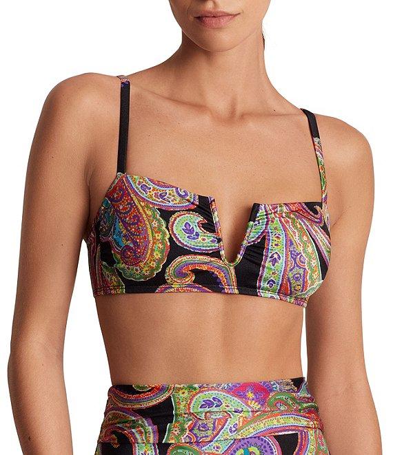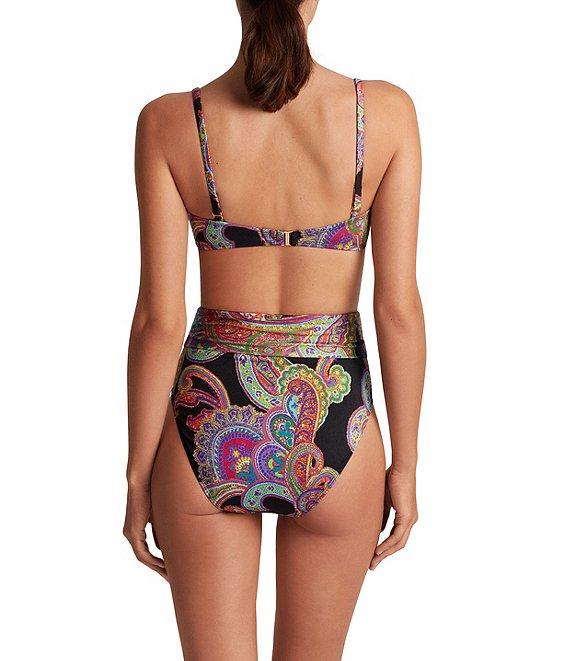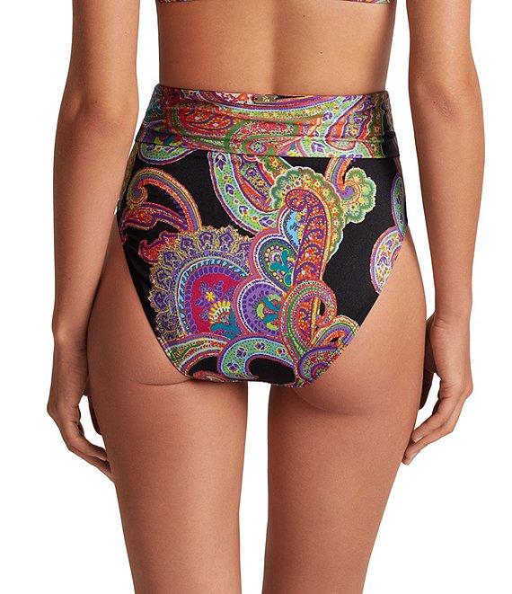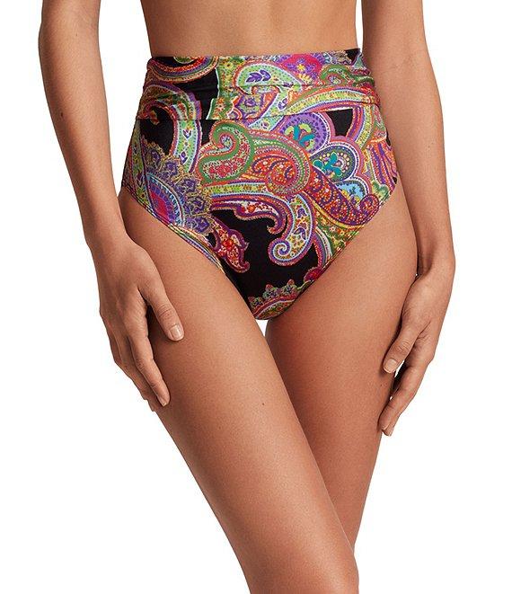 Lauren Ralph Lauren Bordado Paisley Shirred High Waist Swim Bottom