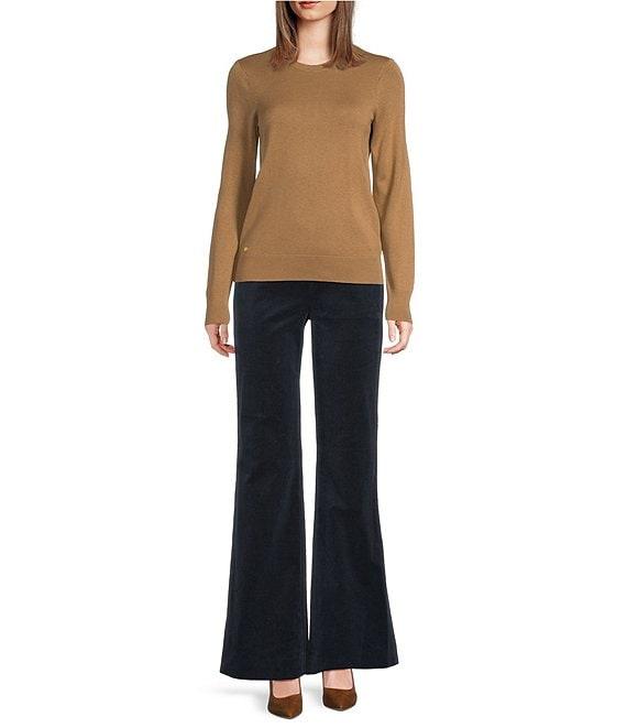 From Lauren Ralph Lauren, these pants feature: Corduroy fabrication Flare leg silhouette High rise Belt loops Two front angled and two back waist welt pockets Back waist darts Full length Front button and zipper closure Approx. 32.5" inseam, 23.75" leg opening, 12" rise Cotton/elastane Machine wash Imported.