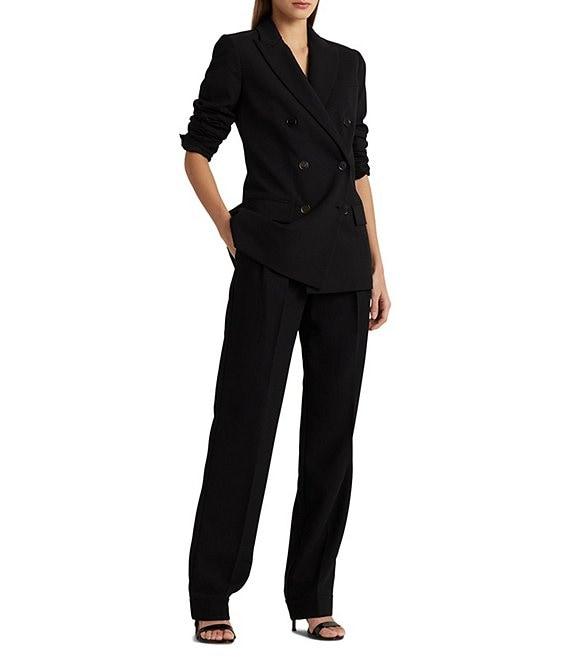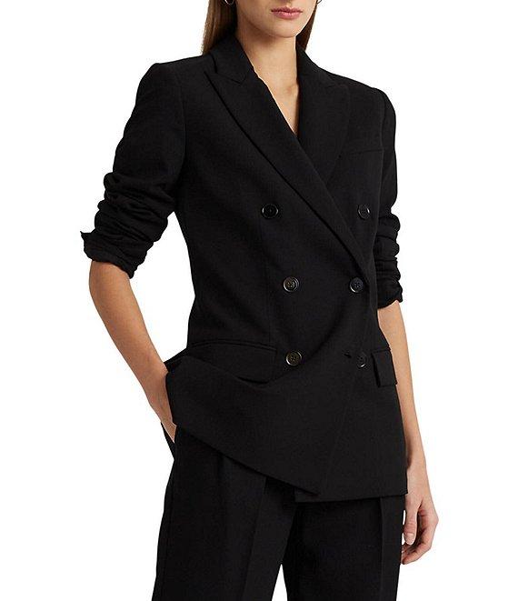 Lauren Ralph Lauren Double Breasted Wool Crepe Notch Lapel Long Sleeve Blazer