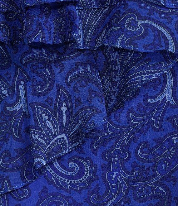 Lauren Ralph Lauren Georgette Off-The-Shoulder Cascading Ruffles Paisley Printed Gown