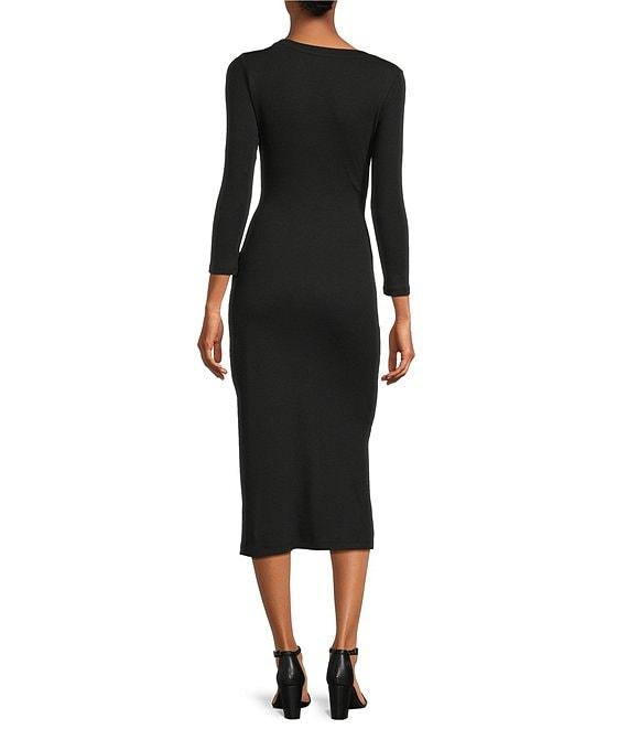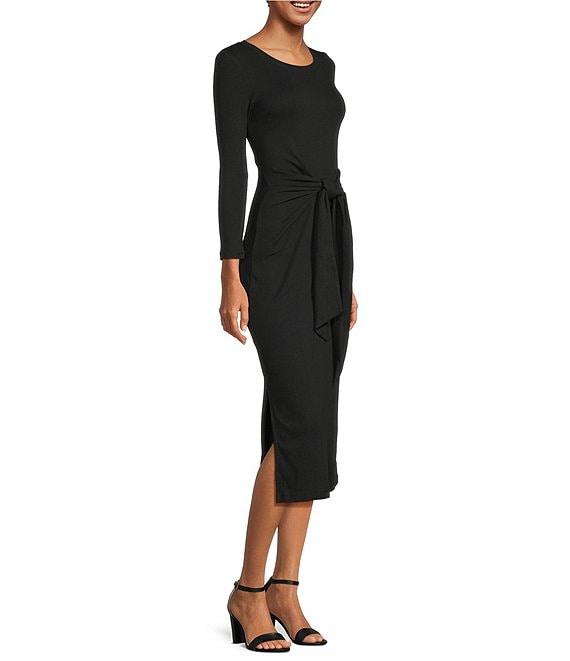 From Lauren Ralph Lauren, this dress features: Ribbed knit fabrication Crew neckline Long sleeves Sheath silhouette Self-ties at the waist Left side skirt slit Pullover construction Approx. 46" in length from high point shoulder Cotton/modal/elastane Machine wash Imported.