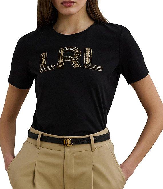 From Lauren Ralph Lauren, this tee features Knit fabrication Crew neck Short sleeves Beaded LRL logo on tee front chest Relaxed fit, intended to hit at the hip Straight hemline Pullover construction Approx. 25.5" length Cotton Machine wash Imported.
