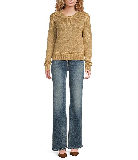 From Lauren Ralph Lauren, this sweater features: Metallic cotton blend fabrication Ribbed crew neckline Long sleeves Ribbed cuffs Dropped shoulders Relaxed fit, intended to hit at the hip Ribbed hem Pullover construction Approx. 20.5" body length, 21.25" sleeve length, 0.5" between sizes Cotton/viscose/polyester/metallic fabric Hand wash cold/flat dry or dry clean Imported.