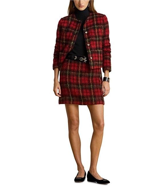 From Lauren Ralph Lauren, this skirt features: Mohair fabrication Plaid pattern Pencil silhouette Fully lined Mini length Concealed left side zipper with hook-and eye closure Approx. 17.25" length, 0.25" between sizes Polyester/wool/cotton/acrylic/alpaca hair/elastane Dry clean only Imported.