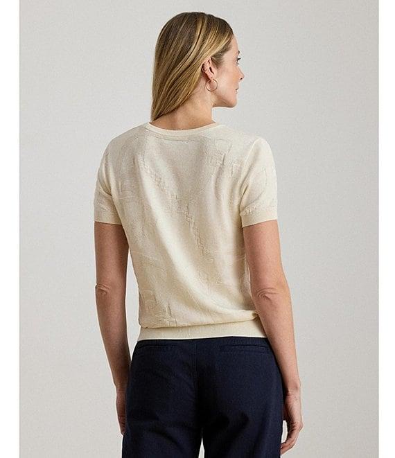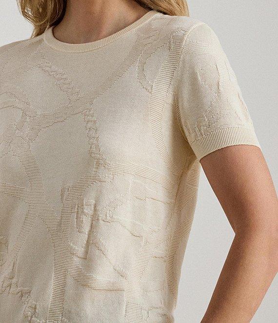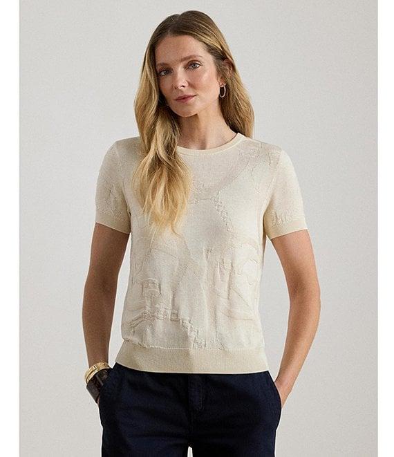 From Lauren Ralph Lauren Petite, this sweater features: Cotton-blend sweater fabrication Ribbed crew neckline Short sleeves with ribbed cuffs Relaxed fit Textural belting motif Intended to hit at the hip Straight ribbed hem Pullover construction Approx. 21.5" body length Body length is taken from the high point of the shoulder Viscose/cotton Machine washable or dry clean Imported.