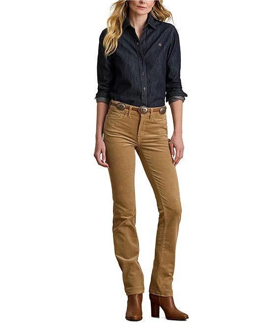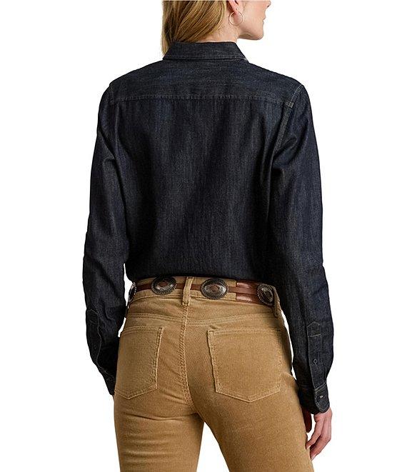 From Lauren Ralph Lauren Petite, this shirt features: Twill denim fabrication Point collar Long sleeves with buttoned barrel cuffs Relaxed fit Intended to hit at the hip "LRL"-embroidered logo at the left chest Back yoke Shirttail hem Button-front closure Approx. 26.5" length, 31.5" sleeve length Cotton Machine washable Imported.