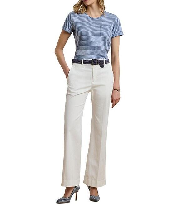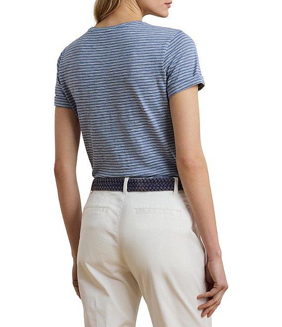 From Lauren Ralph Lauren Petite, this tee features: Soft slub jersey fabrication Crew neck Short sleeves with rolled cuffs Horizontal stripes pattern Relaxed fit Left chest patch pocket Intended to hit at the hip “LRL”-embroidered logo at the front right hem Pullover construction Approx. 24" body length Body length is taken from the high point of the shoulder Cotton Machine washable or dry clean Imported.