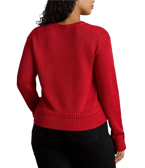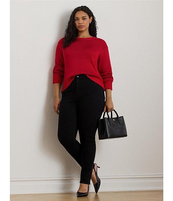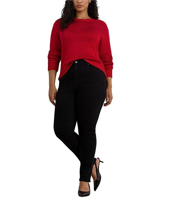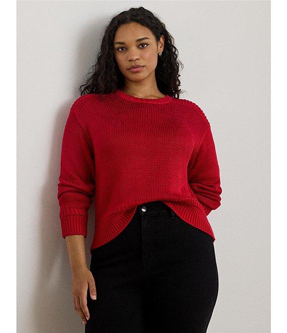 From Lauren Ralph Lauren Plus, this sweater features: Cotton-blend fabrication Ribbed crew neckline Long sleeves with ribbed cuffs Slightly dropped shoulders Rack stitching at the shoulders, cuffs and above the hem Relaxed fit, intended to hit at the hip Ribbed hem Pullover construction Approx. 24.5" body and 21.25" sleeve length, 0.5" between sizes Cotton/viscose Machine washable or dry clean Imported.