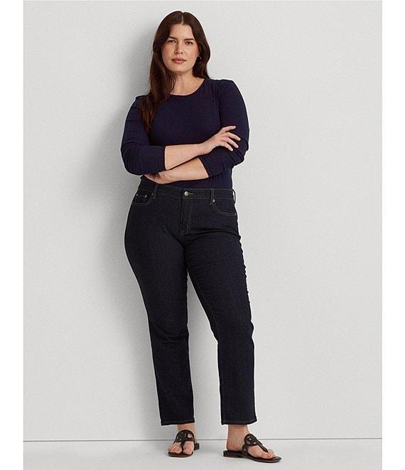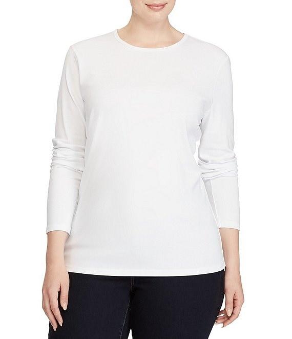 From Lauren Ralph Lauren Plus, this top features: knit fabrication crew neckline long sleeves embroidery detail pullover construction approx. 28" body length cotton/elastane machine wash Imported. This Lauren Ralph Lauren Plus slim-fitting cotton T-shirt is finished with an embroidered "LRL" monogram at the hem for a signature touch.