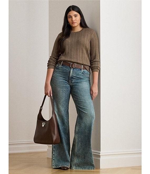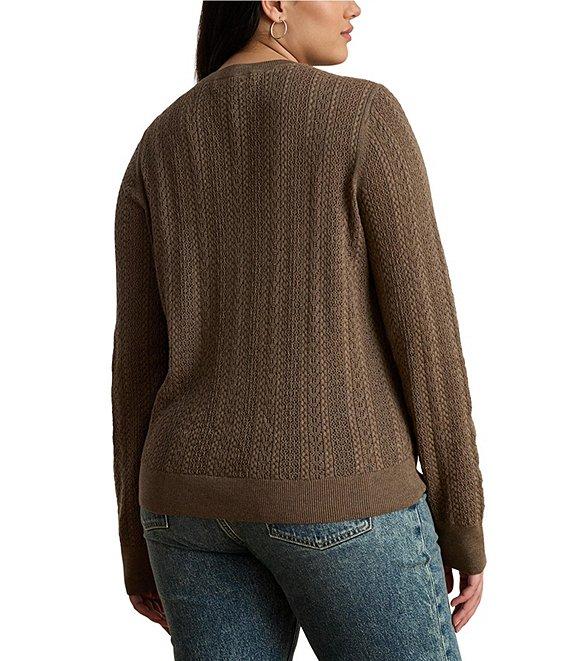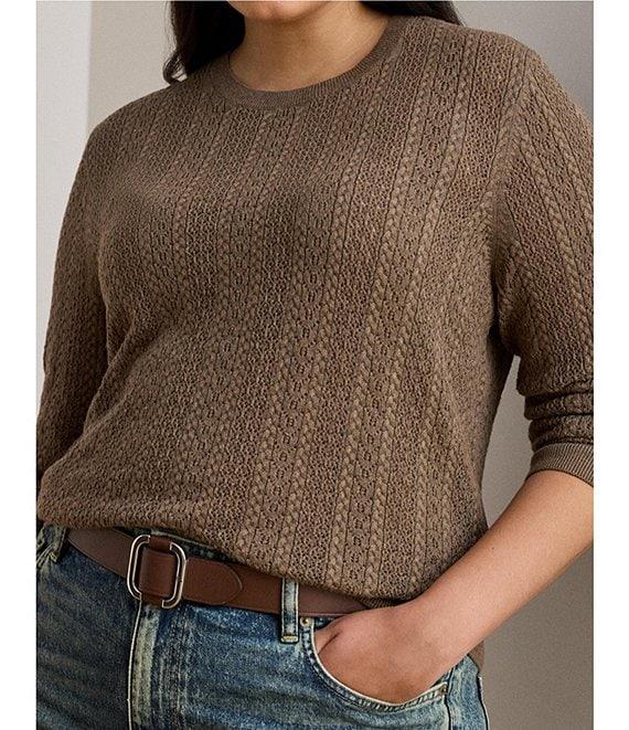 From Lauren Ralph Lauren Plus, this sweater features: Pointelle knit fabrication Crew neckline Long sleeves with ribbed cuffs Slim fit Intended to hit at the hip Ribbed hem Pullover construction Approx. 27" body length, 23.75 sleeve length, 0.5" between sizes Cotton/modal Hand wash or dry clean Imported.