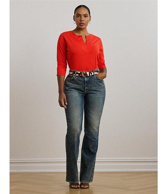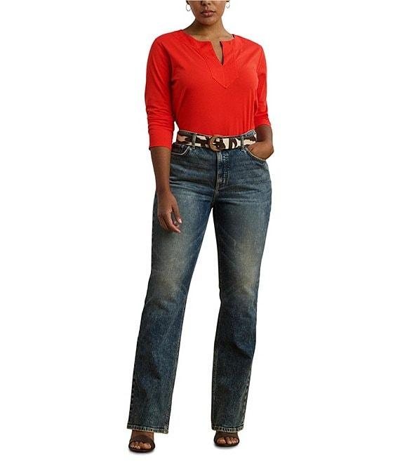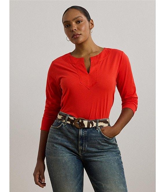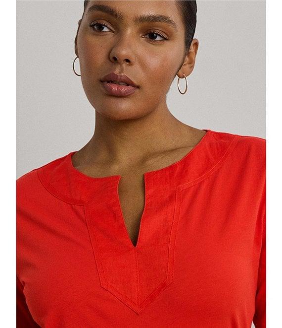 Lauren Ralph Lauren Plus Size Split Neck 3/4 Sleeve Tunic Top