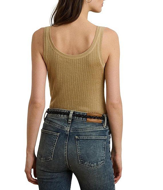 From Lauren Ralph Lauren, this tank top features: Ribbed knit fabrication Scoop neckline Sleeveless Slim fit, intended to hit at the hip Ribbed hemline Pullover construction Approx. 22" length Linen/viscose Hand wash Imported.