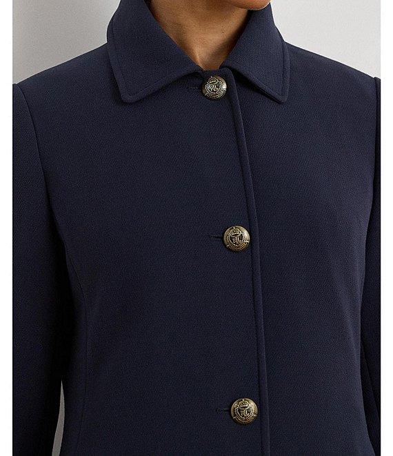 From Lauren Ralph Lauren, this coat features: Crepe fabrication Single breasted silhouette Notch collar neckline Long sleeves Side seam pockets Straight fit Fully lined Straight hemline Button front closure Approx. 36" length Polyester/viscose; lining: polyester Dry clean Imported.