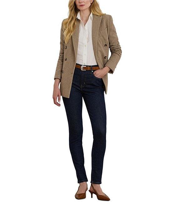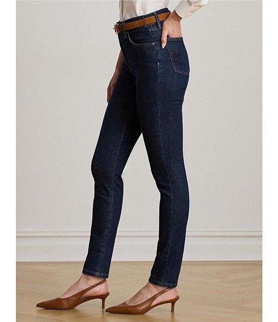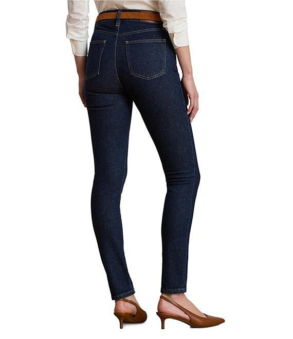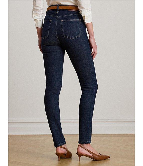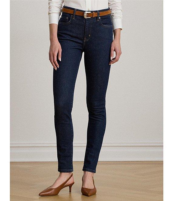 From Lauren Ralph Lauren, these jeans feature: Stretch denim fabrication High rise Belt loops 5 pocket styling Skinny leg Ankle length Front button and zipper closure Approx. 28" inseam, 11.75" leg opening, 11.5" rise Cotton/elastane Machine wash Imported.