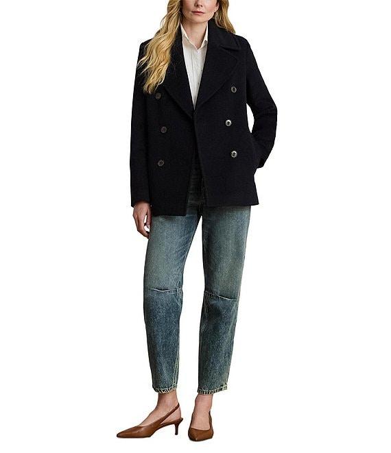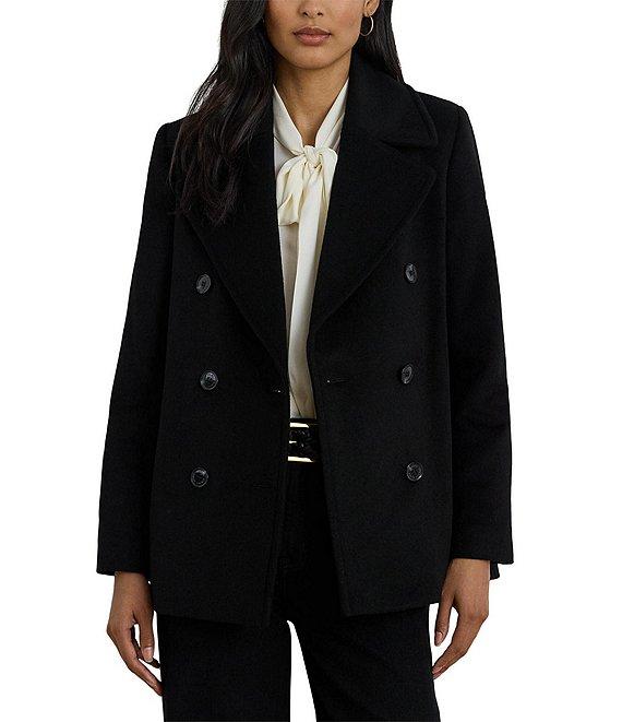 From Lauren Ralph Lauren, this coat features: Wool blend fabrication Peacoat silhouette Notch collar neckline Long sleeves Two front pockets Straight fit Fully lined Straight hemline Button front closure Approx. 28" length Wool/polyester/rayon/other fibers Dry clean Imported.