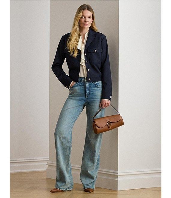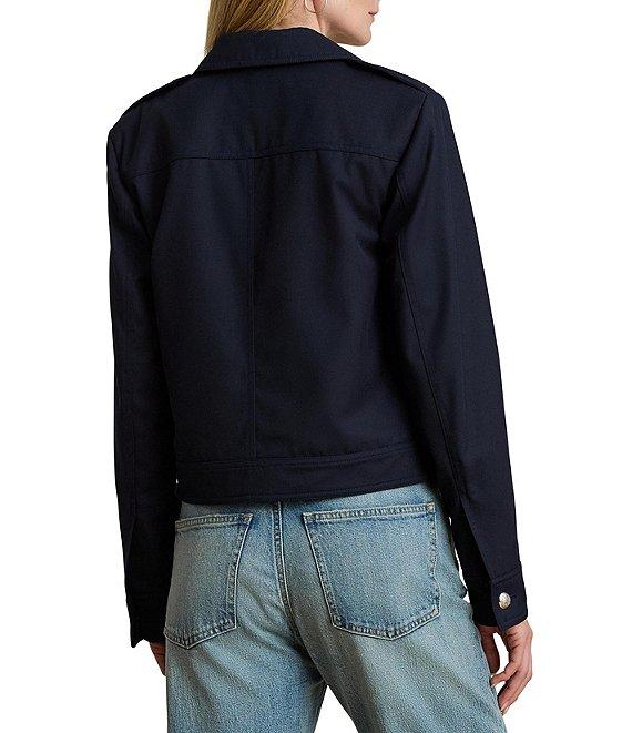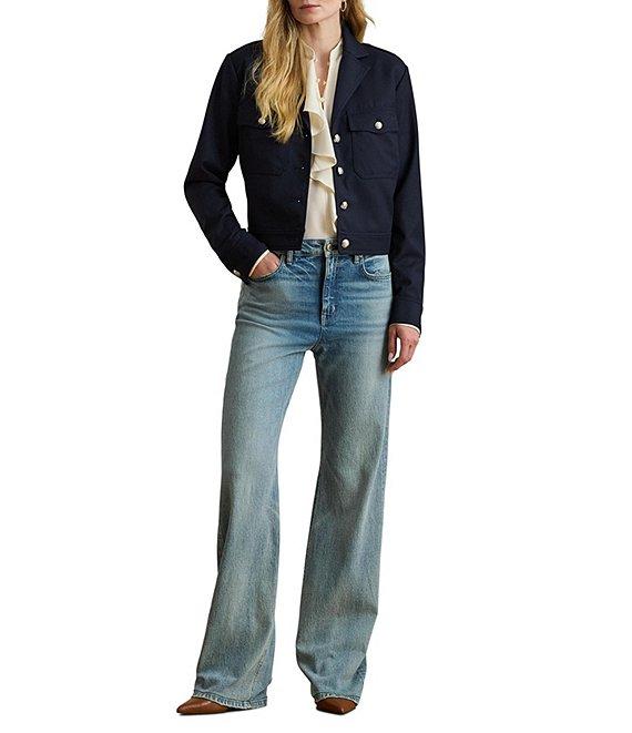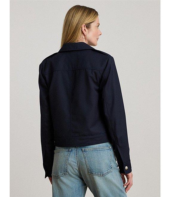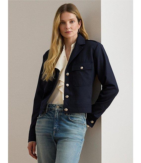 From Lauren Ralph Lauren, this jacket features: Notch collar Long sleeves with buttoned shoulder epaulets, and pads Chest flap patch pockets LRL crest embossed buttons Cropped length Fully lined Straight hemline Front button closure Approx. 20.75" body, 33.25" sleeve length, 0.25" between sizes Wool/polyester/elastane Hand wash Imported.