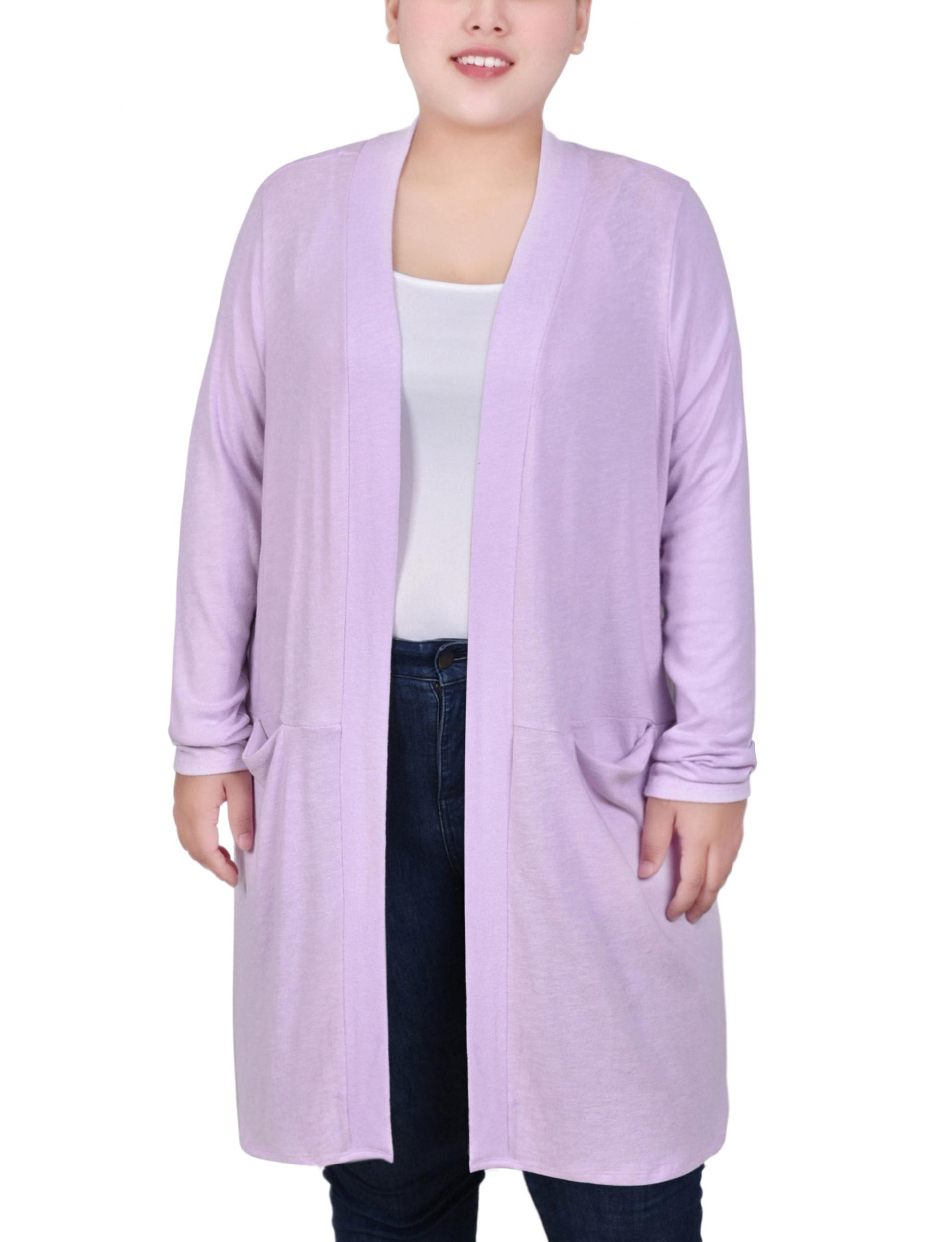 Lavender Long Sleeve Knee Length Cardigan - Plus