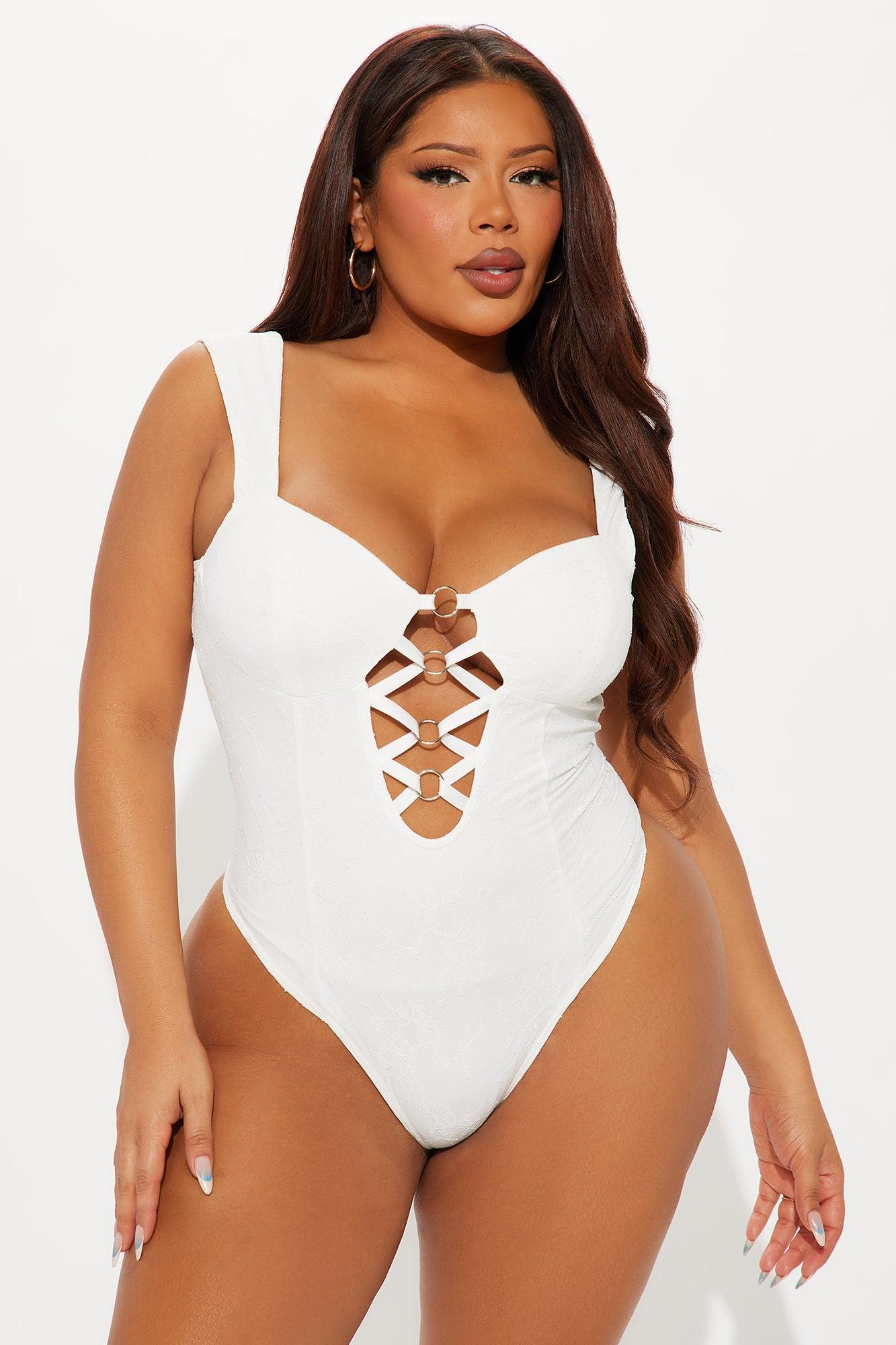 Available In Black And Off White. Corset Bodysuit Stretch Cut Out Hardware Seaming Cheeky Bottom Snap Closure Final Sale Self: 90% Nylon 10% Spandex Lining: 95% Polyester 5% Spandex Imported California Proposition 65WARNING: Cancer and Reproductive Harm - www.P65Warnings.ca.gov.