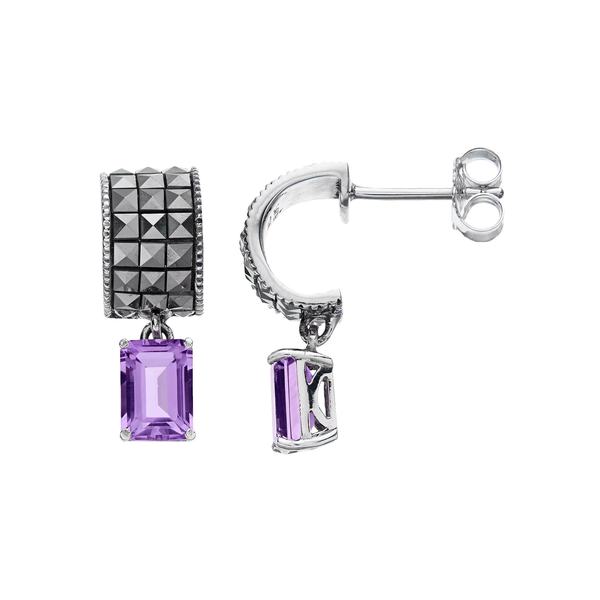 Add the perfect finishing touch to your ensemble with these Lavish by TJM Sterling Silver Amethyst & Marcasite Drop Earrings. Click on this JEWELRY & WATCHES GUIDE to learn about fit, styles, materials and more! Add the perfect finishing touch to your ensemble with these Lavish by TJM Sterling Silver Amethyst & Marcasite Drop Earrings. Click on this JEWELRY & WATCHES GUIDE to learn about fit, styles, materials and more! FEATURES Dimensions: 16.25 x 7 mm Backings: post Nickel free Metal: sterling silver Finish: oxidized Packaging: boxedSTONE DETAILS Stone type: amethyst Total weight: 1 7/8 ct. Center stone weight: 1 3/4 ct. Center stone: 7x5 mm Shape: octagon Setting: prong Size: One Size. Color: Purple. Gender: female. Age Group: adult.