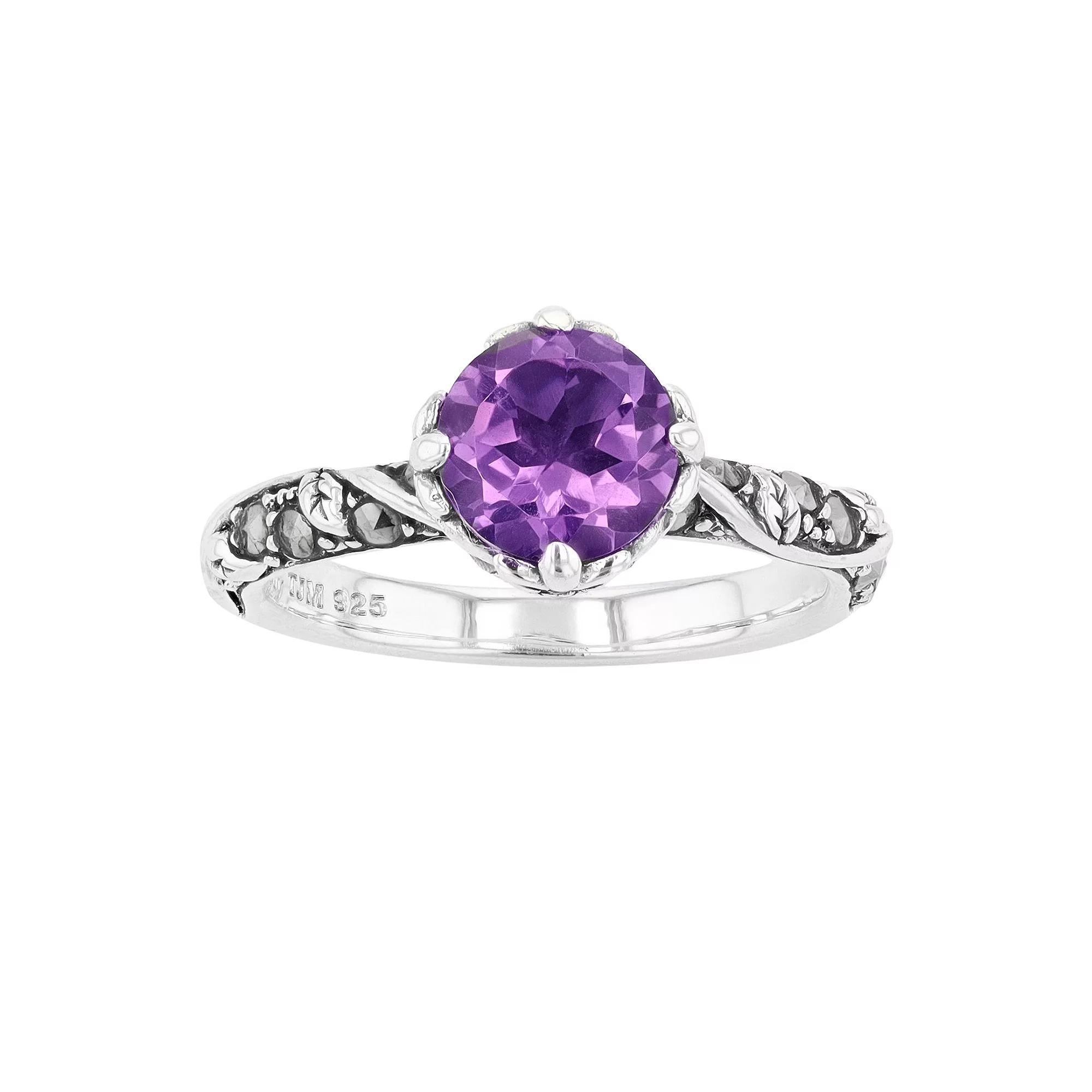 Add an elegant finishing touch to your style with this beautiful Lavish by TJM sterling silver amethyst and marcasite ring. Click on this JEWELRY & WATCHES GUIDE to learn about fit, styles, materials and more! Add an elegant finishing touch to your style with this beautiful Lavish by TJM sterling silver amethyst and marcasite ring. Click on this JEWELRY & WATCHES GUIDE to learn about fit, styles, materials and more! FEATURES Ring width: 0.83 in. Shank style: anniversary Band fit: comfort fit Nickel free Metal: sterling silver Finish: oxidized Packaging: boxedSTONE DETAILS Stone type: amethyst Total weight: 1 1/3 ct. Center stone weight: 1 1/5 ct. Center stone size: 7 mm. Shape: round Setting: prong Gemstones may have been treated to enhance their appearance. Special care may be required. Please visit our Gemstone Treatment & Special Care Guide for more information. Size: 6. Color: Purple. Gender: female. Age Group: adult.