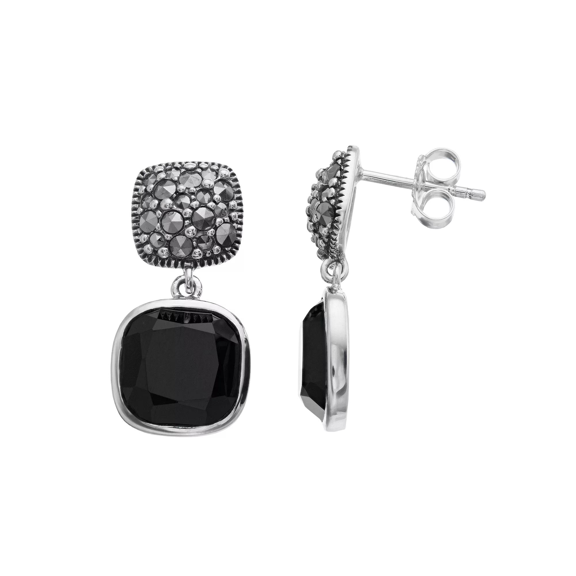 Complement your ensemble with these dazzling Lavish by TJM black onyx and marcasite dangle earrings. Click on this JEWELRY & WATCHES GUIDE to learn about fit, styles, materials and more! Complement your ensemble with these dazzling Lavish by TJM black onyx and marcasite dangle earrings. Click on this JEWELRY & WATCHES GUIDE to learn about fit, styles, materials and more! FEATURES Length: 26.20 mm x 11.58 mm Backings: post Metal: sterling silver Plating: rhodium Finish: oxidized Packaging: boxed Nickel freeSTONE DETAILS Stone type: onyx Total weight: 5.22 ct; 0.16 ct. Center stone size: 10 mm x 10 mm Shape: cushion cut Setting: bezel Gemstones may have been treated to enhance their appearance. Special care may be required. Please visit our Gemstone Treatment & Special Care Guide for more information. Gender: female. Age Group: adult.