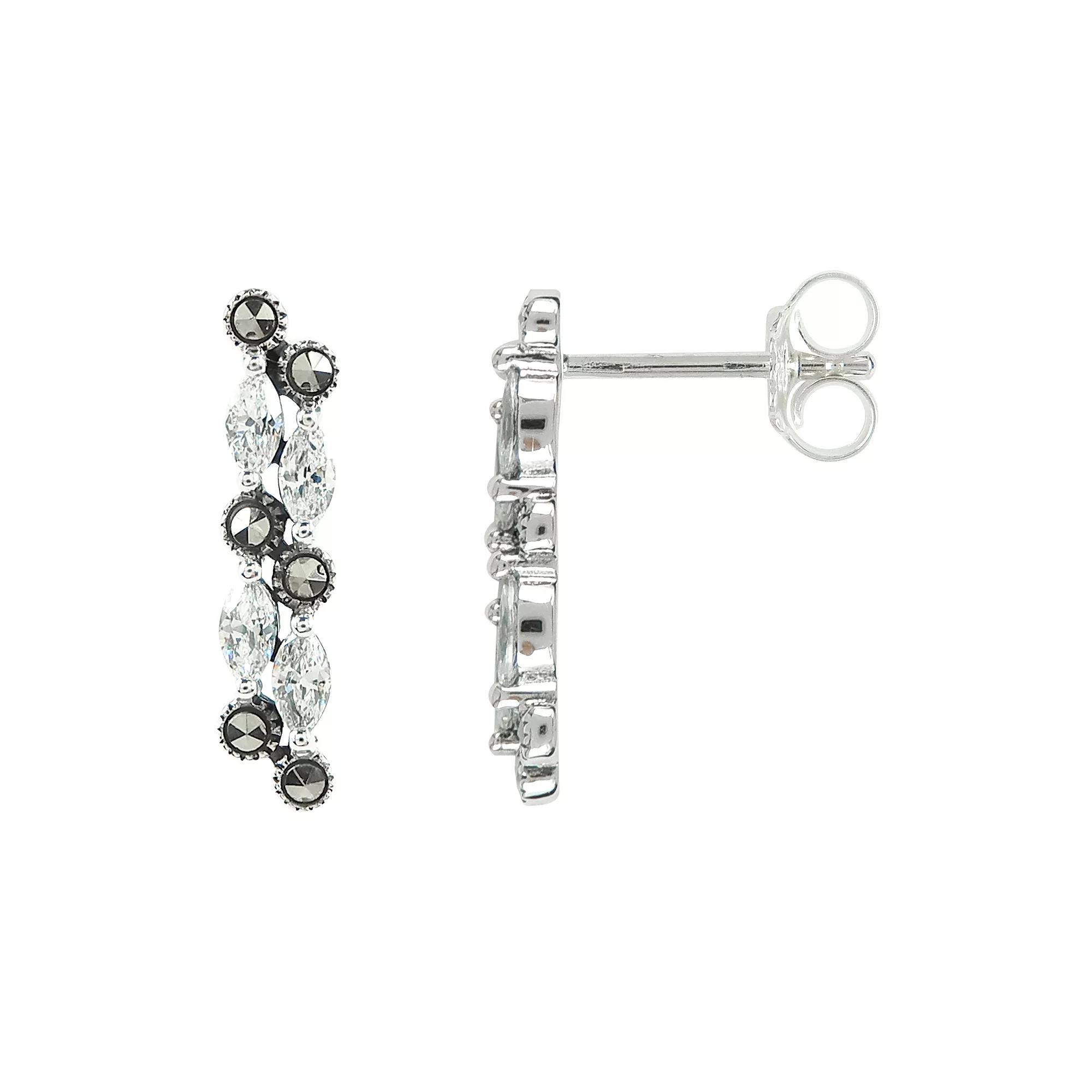 You'll love the beautiful and elegant style of these Lavish by TJM Sterling Silver Cubic Zirconia & Marcasite Waterfall Stud Earrings. Click on this JEWELRY & WATCHES GUIDE to learn about fit, styles, materials and more! You'll love the beautiful and elegant style of these Lavish by TJM Sterling Silver Cubic Zirconia & Marcasite Waterfall Stud Earrings. Click on this JEWELRY & WATCHES GUIDE to learn about fit, styles, materials and more! FEATURES Dimensions: 7.62 mm x 11.68 mm Backings: post Metal: sterling silver Plating: silver tone Finish: oxidized Packaging: boxed Nickel free ImportedSTONE DETAILS Stone type: cubic zirconia, marcasite Shape: marquise Setting: prong Size: One Size. Gender: female. Age Group: adult.