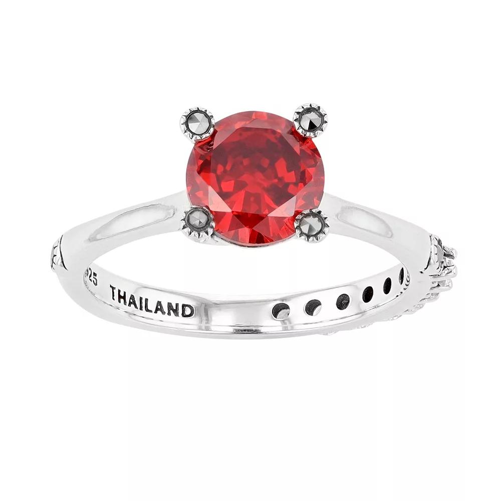You will love the simple, yet unique, design of this Lavish by TJM garnet cubic zirconia and marcasite ring. Click on this JEWELRY & WATCHES GUIDE to learn about fit, styles, materials and more! You will love the simple, yet unique, design of this Lavish by TJM garnet cubic zirconia and marcasite ring. Click on this JEWELRY & WATCHES GUIDE to learn about fit, styles, materials and more! FEATURES Width: 0.80 Shank style: twist Metal: sterling silver Plating: rhodium Finish: oxidized Packaging: boxed Nickel freeSTONE DETAILS Stone type: cubic zirconia Total weight: 2 5/8 ct. Center stone weight: 2 1/10 ct. Center stone size: 7 mm Shape: round Setting: prong Size: 6. Color: Red. Gender: female. Age Group: adult.