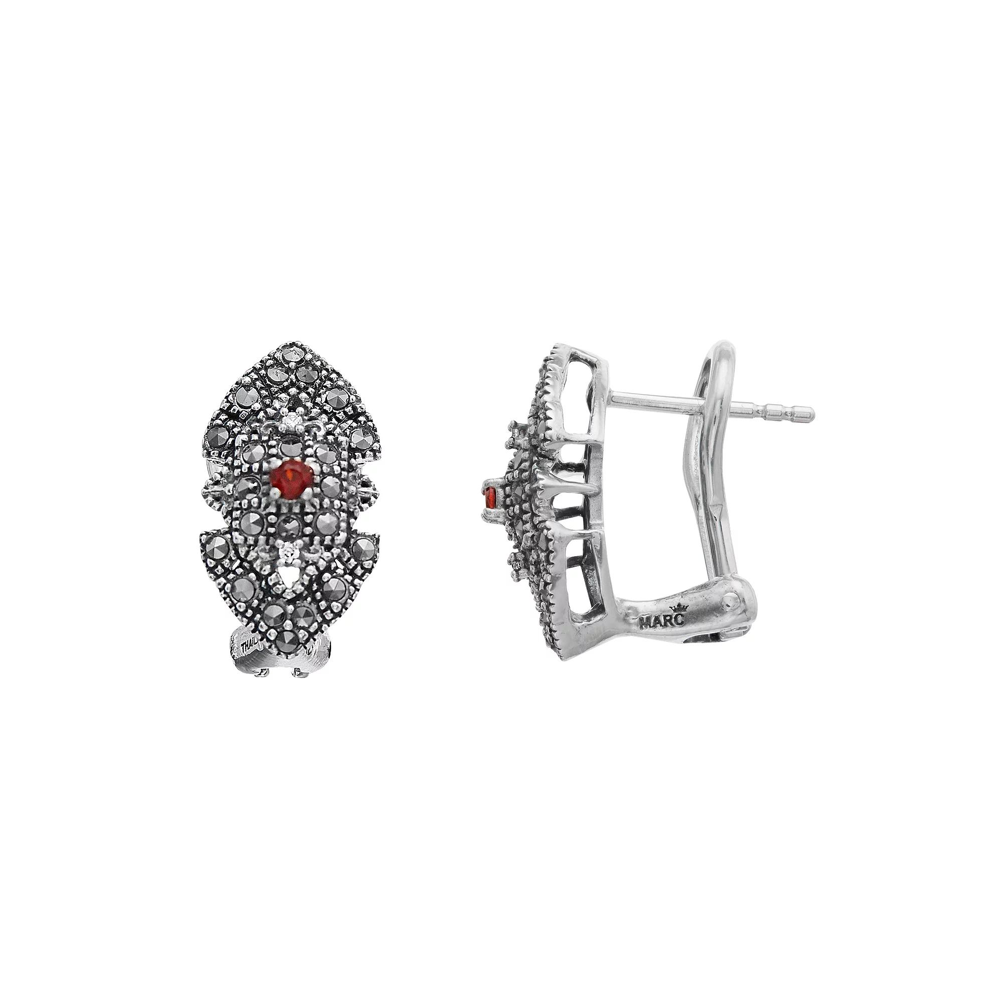 Beautifully accent your ensemble with these Lavish by TJM garnet, marcasite and cubic zirconia omega earrings. Click on this JEWELRY & WATCHES GUIDE to learn about fit, styles, materials and more! Beautifully accent your ensemble with these Lavish by TJM garnet, marcasite and cubic zirconia omega earrings. Click on this JEWELRY & WATCHES GUIDE to learn about fit, styles, materials and more! FEATURES Length: 26.60 mm x 10.20 mm Closures: omega Metal: sterling silver Plating: rhodium Finish: oxidized Packaging: boxed Nickel freeSTONE DETAILS Stone type: garnet Total weight: 1/2 ct. Center stone weight: less than 1/10 ct. Center stone size: 2 mm Shape: round Setting: pave Gemstones may have been treated to enhance their appearance. Special care may be required. Please visit our Gemstone Treatment & Special Care Guide for more information. Gender: female. Age Group: adult.