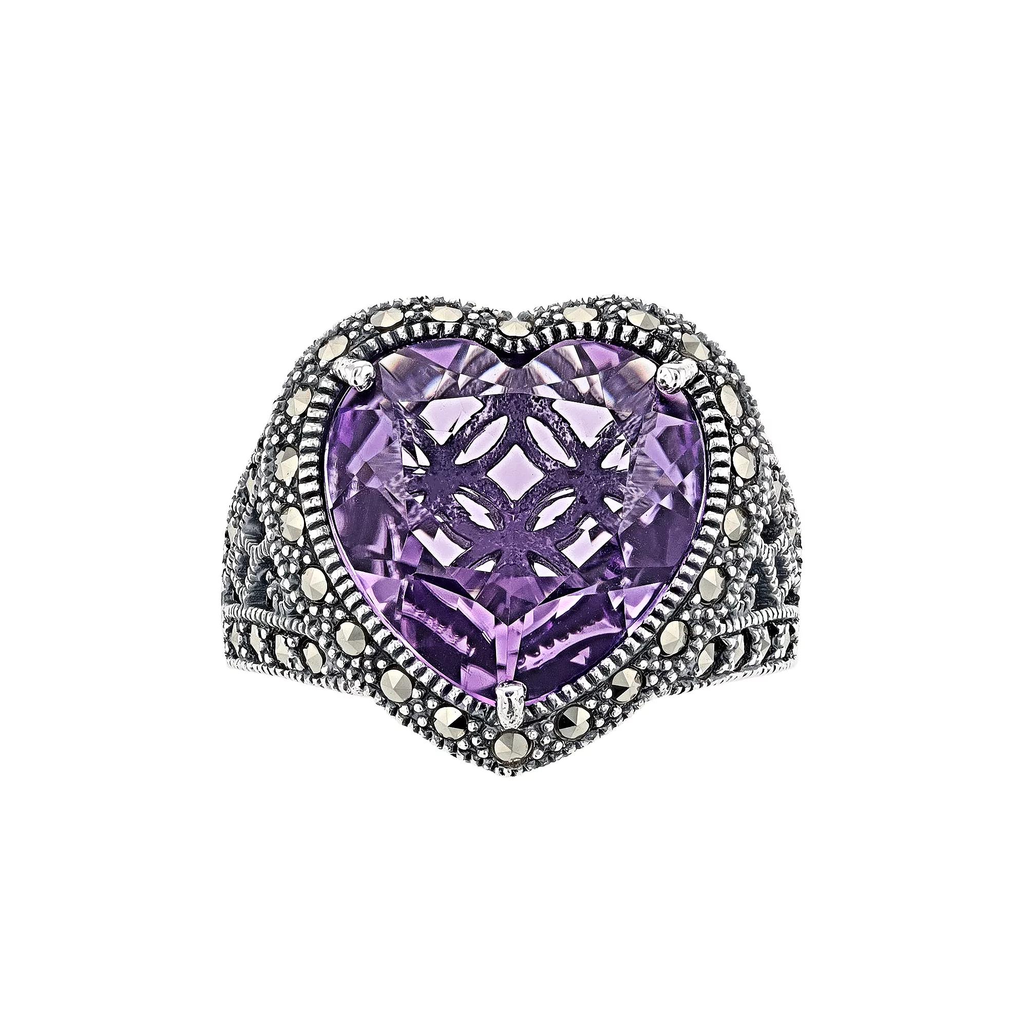 Featuring a heart-shaped, lab-created amethyst center stone accented with marcasite, this Lavish by TJM ring is a bold and beautiful complement to your wardrobe. Featuring a heart-shaped, lab-created amethyst center stone accented with marcasite, this Lavish by TJM ring is a bold and beautiful complement to your wardrobe. Metal: sterling silver Plating: rhodium Packaging: boxed Width: 0.82 in. Finish: polishedSTONE DETAILS Stone type: lab-created amethyst Center stone size: 13 mm x 13 mm Shape: heart Setting: prong Gemstones may have been treated to enhance their appearance. Special care may be required. Please visit our Gemstone Treatment & Special Care Guide for more information. Please note, due to the high value of this item, a signature may be required upon delivery. Size: 9. Color: Purple. Gender: female. Age Group: adult.