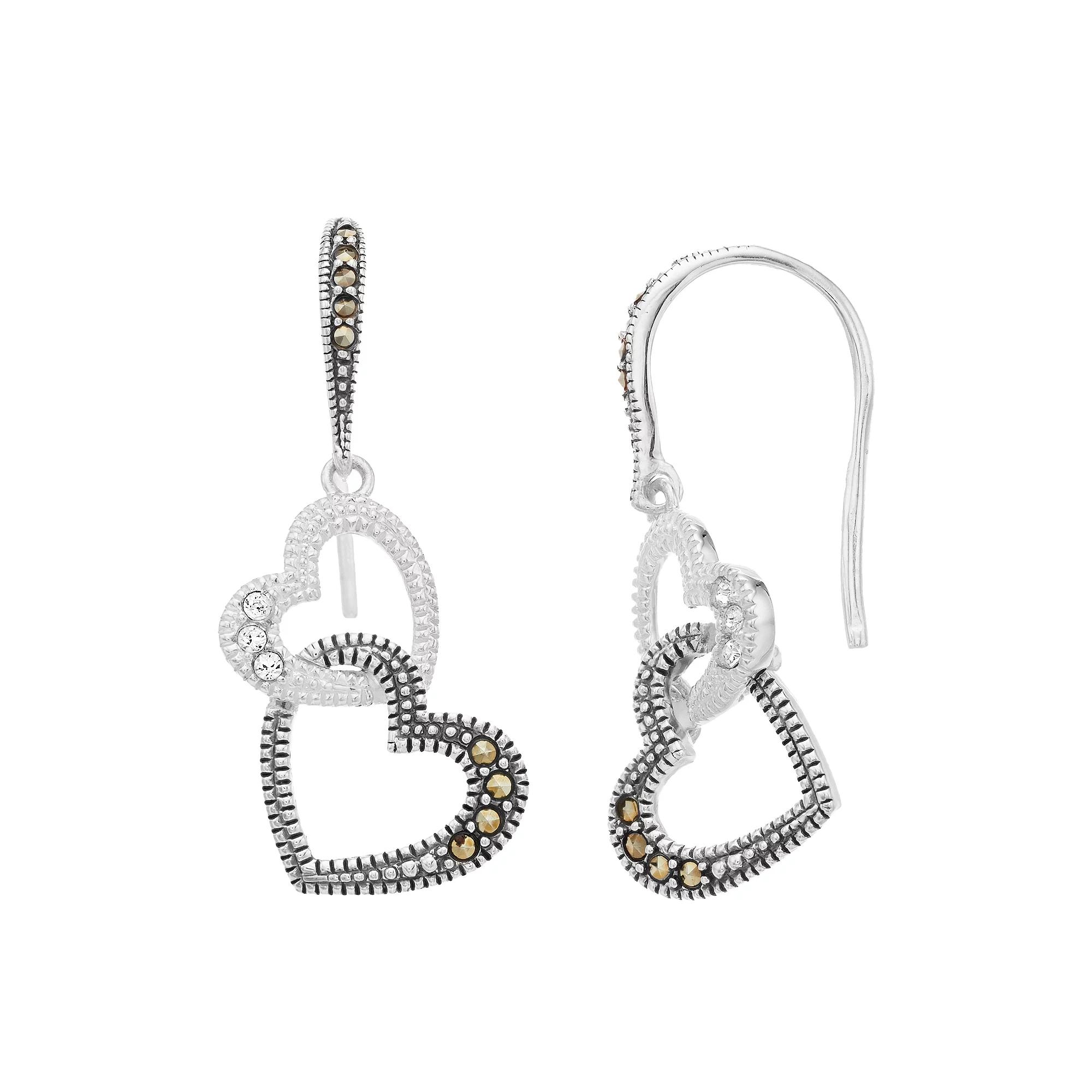 Sparkling with marcasite and crystal details, your special someone will absolutely love this beautiful pair of heart drop earrings. Sparkling with marcasite and crystal details, your special someone will absolutely love this beautiful pair of heart drop earrings. Crystal & marcasite accents Nickel free Metal: sterling silver Backings: Frenchwire Plating: rhodium Packaging: boxed Finish: polished Length: 1.22 in. Size: One Size. Color: White. Gender: female. Age Group: adult.