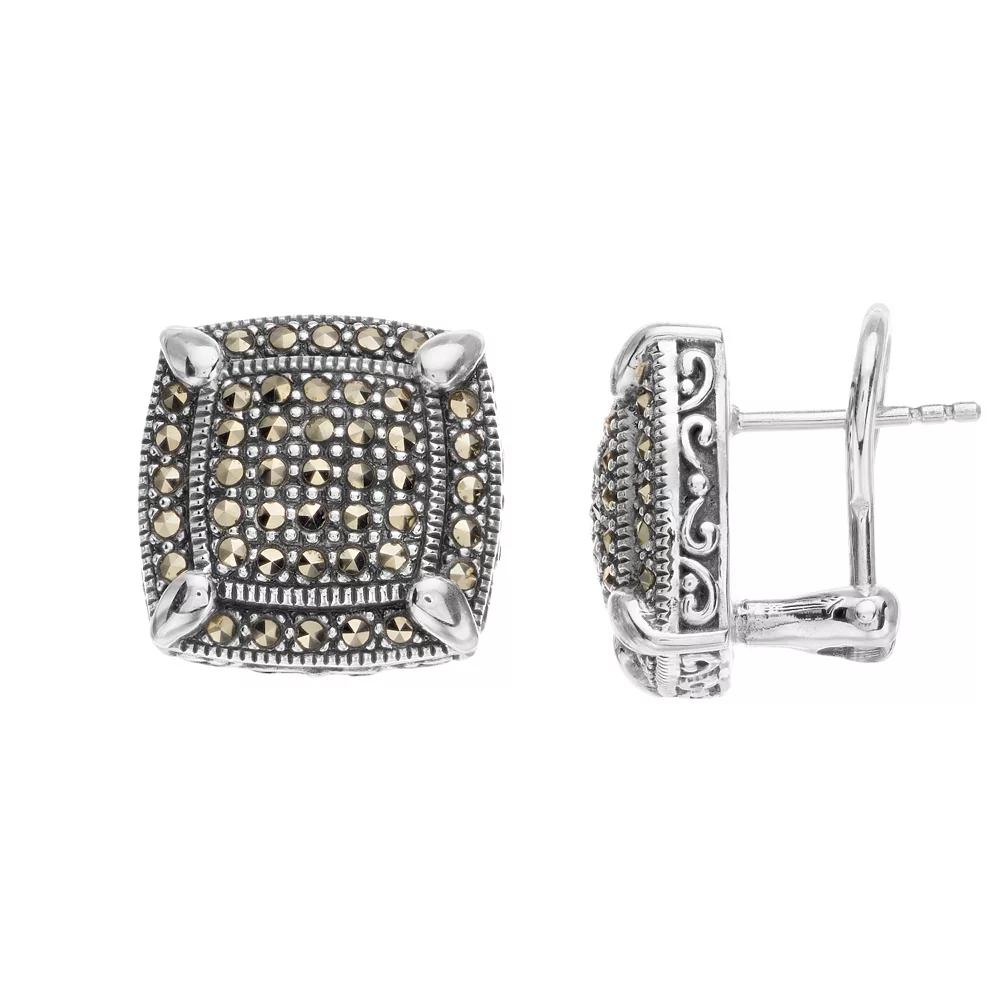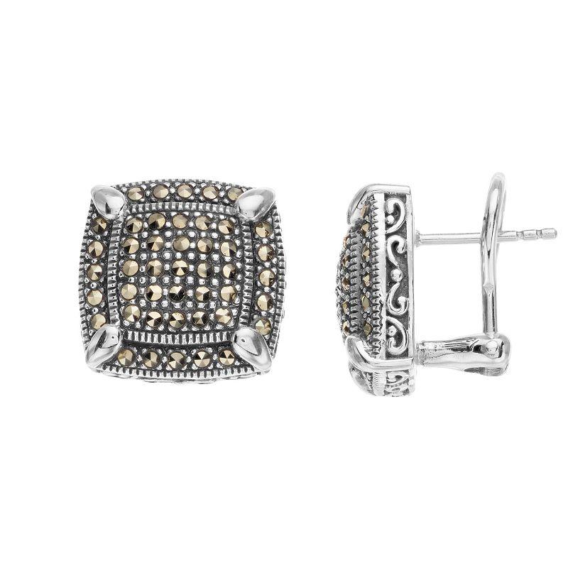 Fashioned with marcasite accents, these omega earrings are lovely addition to your jewelry collection. Fashioned with marcasite accents, these omega earrings are lovely addition to your jewelry collection. Marcasite accents Nickel free Metal: sterling silver Closures: omega Packaging: boxed Plating: rhodium Finish: oxidized Diameter: 0.64 in. Gemstones may have been treated to enhance their appearance. Special care may be required. Please visit our Gemstone Treatment & Special Care Guide for more information. Size: One Size. Color: Grey. Gender: female. Age Group: adult.